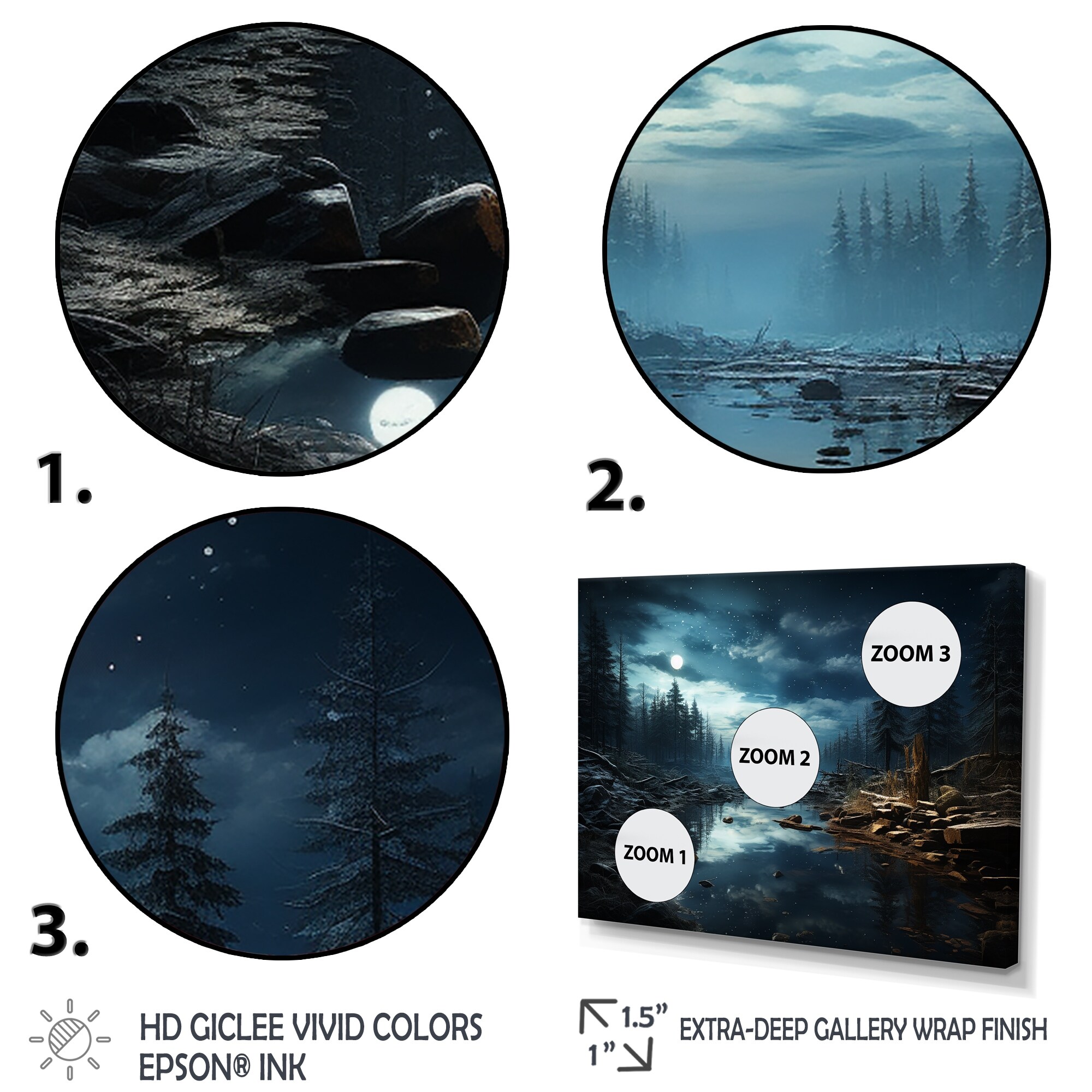 Designart "Winter Landscape Silent Woods" Winter Landscape Framed Canvas Wall Art
