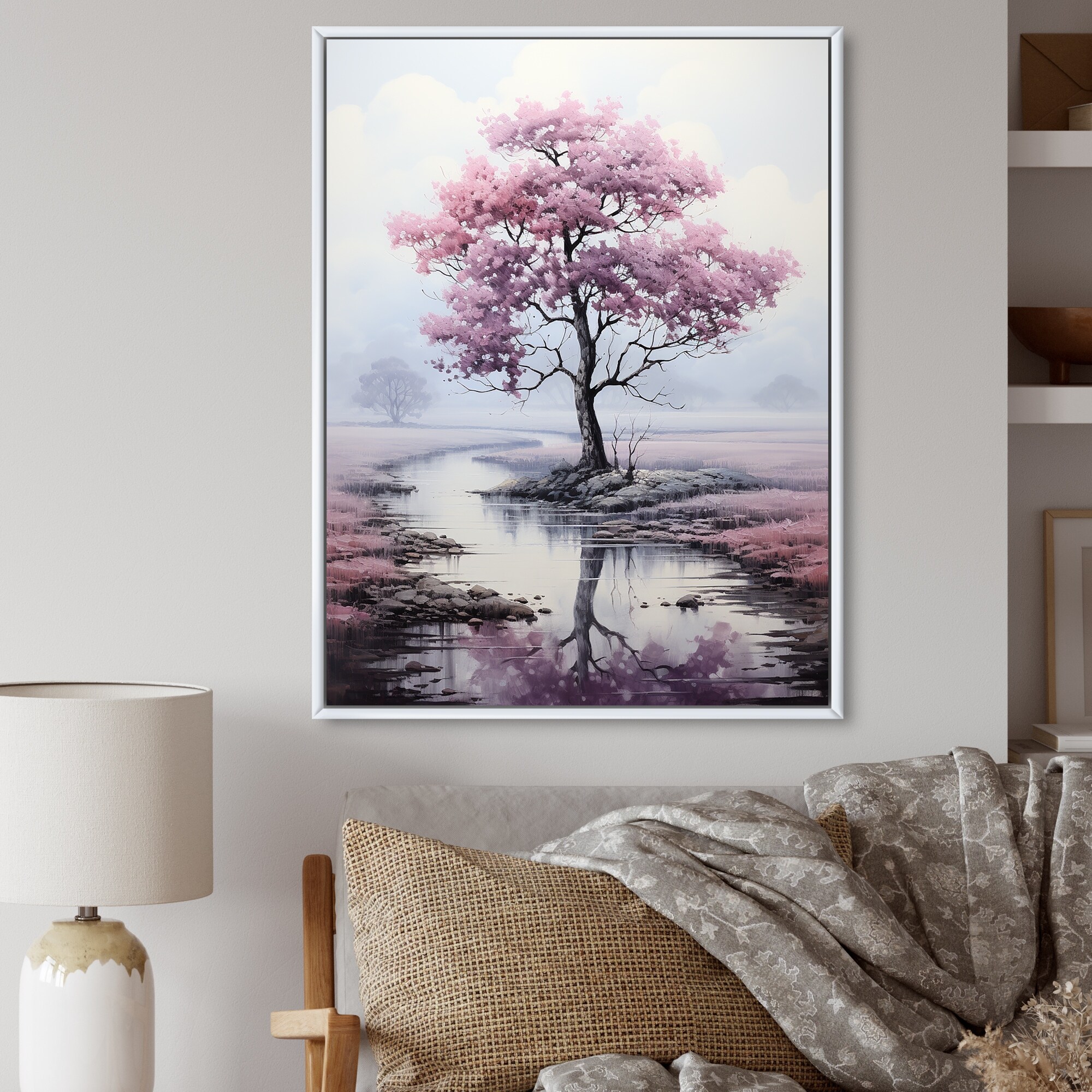 Designart "Pink Tree Silent Whispers" Tree Monochrome Framed Canvas Wall Art