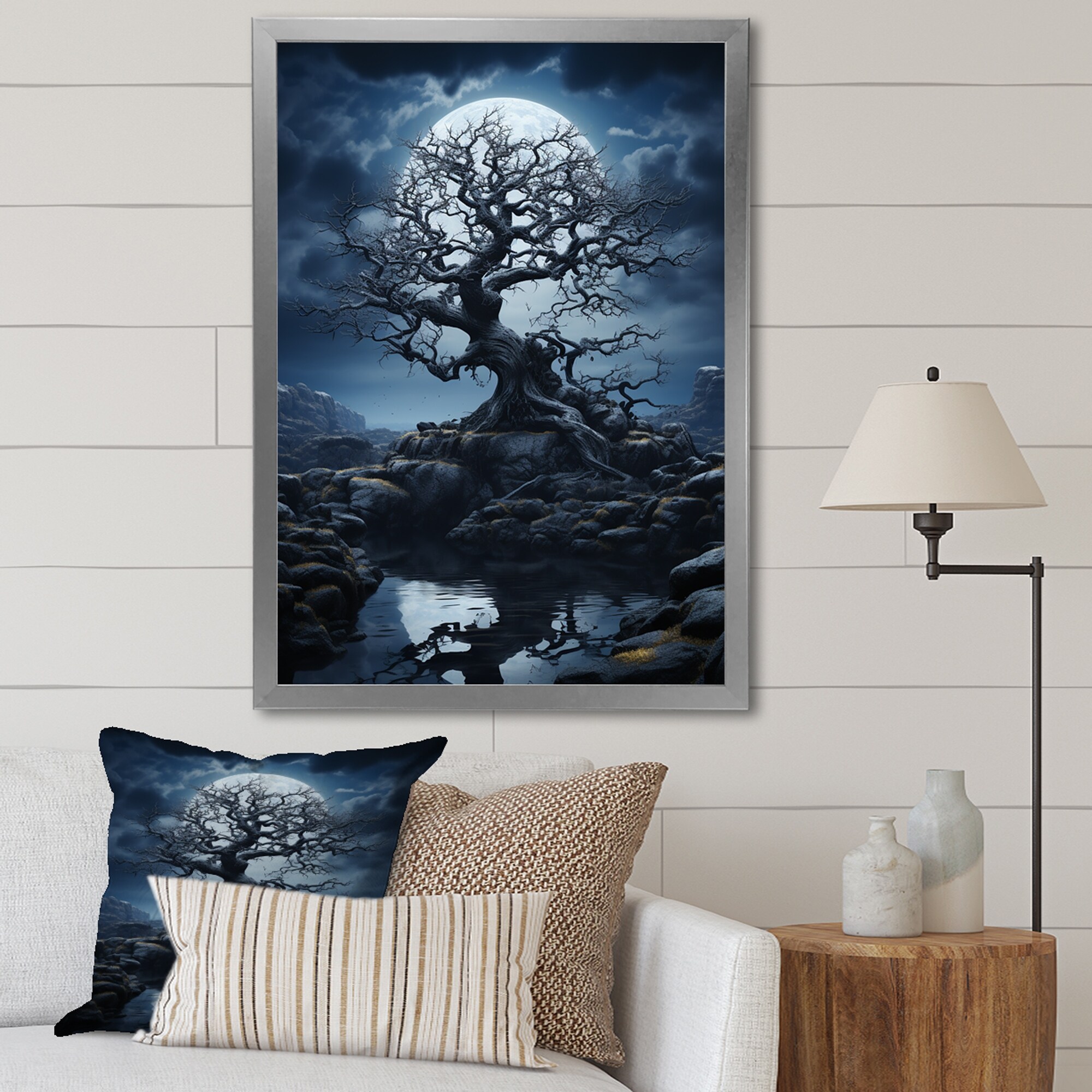 Designart "Blue Grey Tree Silent Strength I" Landscape Trees Framed Wall Art Living Room