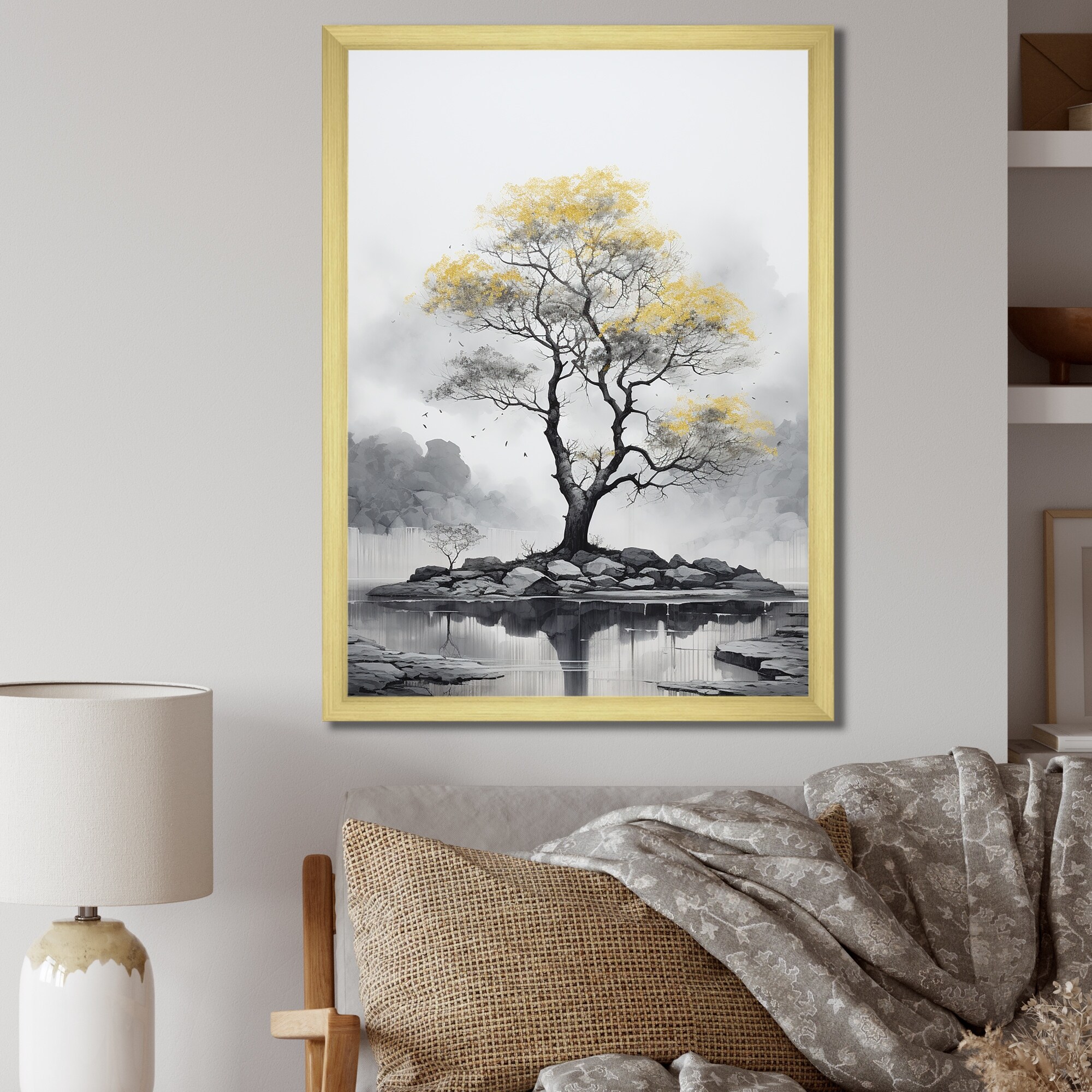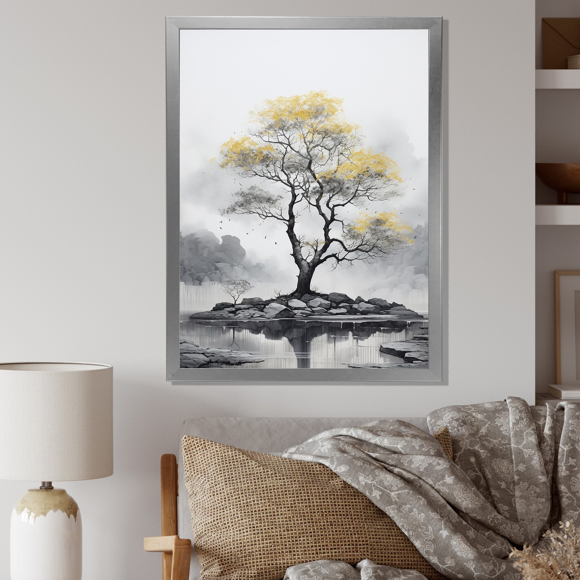 Designart "Yellow Tree Silent Whispers" Tree Monochrome Framed Canvas Wall Art