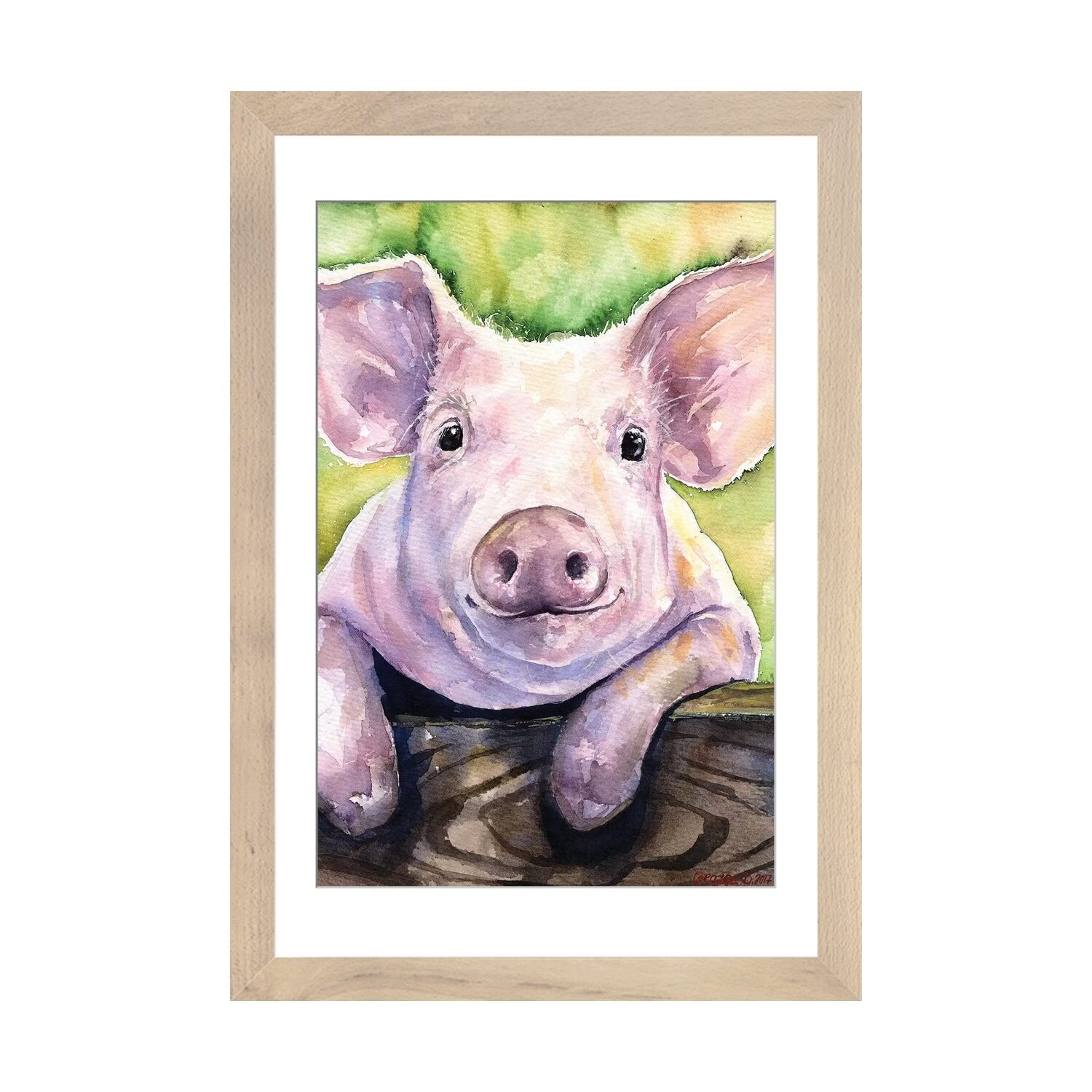 Stupell Industries Smiling Pig Farm Animal Framed Giclee Art by Jen Seeley