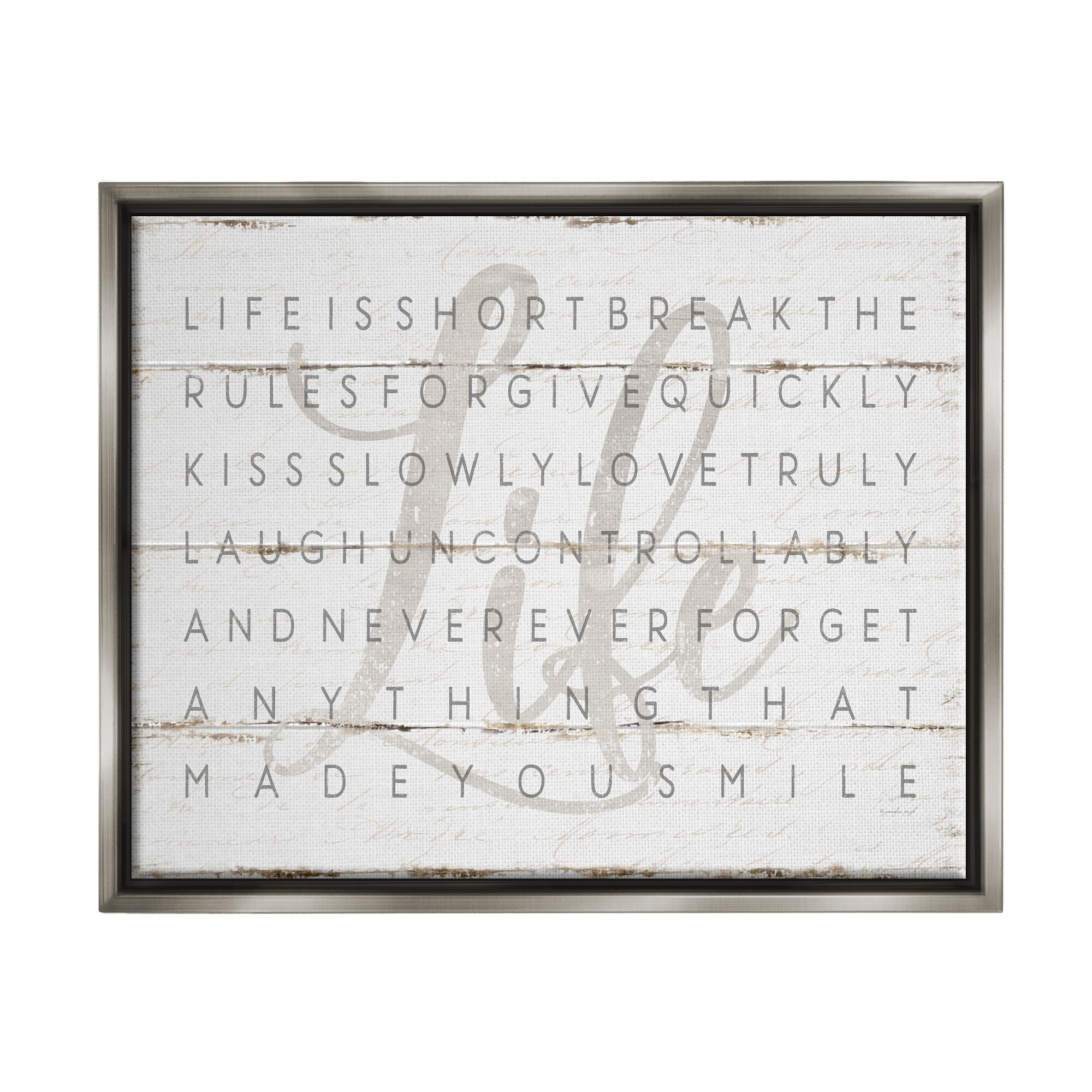 Stupell Life Is Short Smile Grey on White Planked Look Floater Frame - Off-White