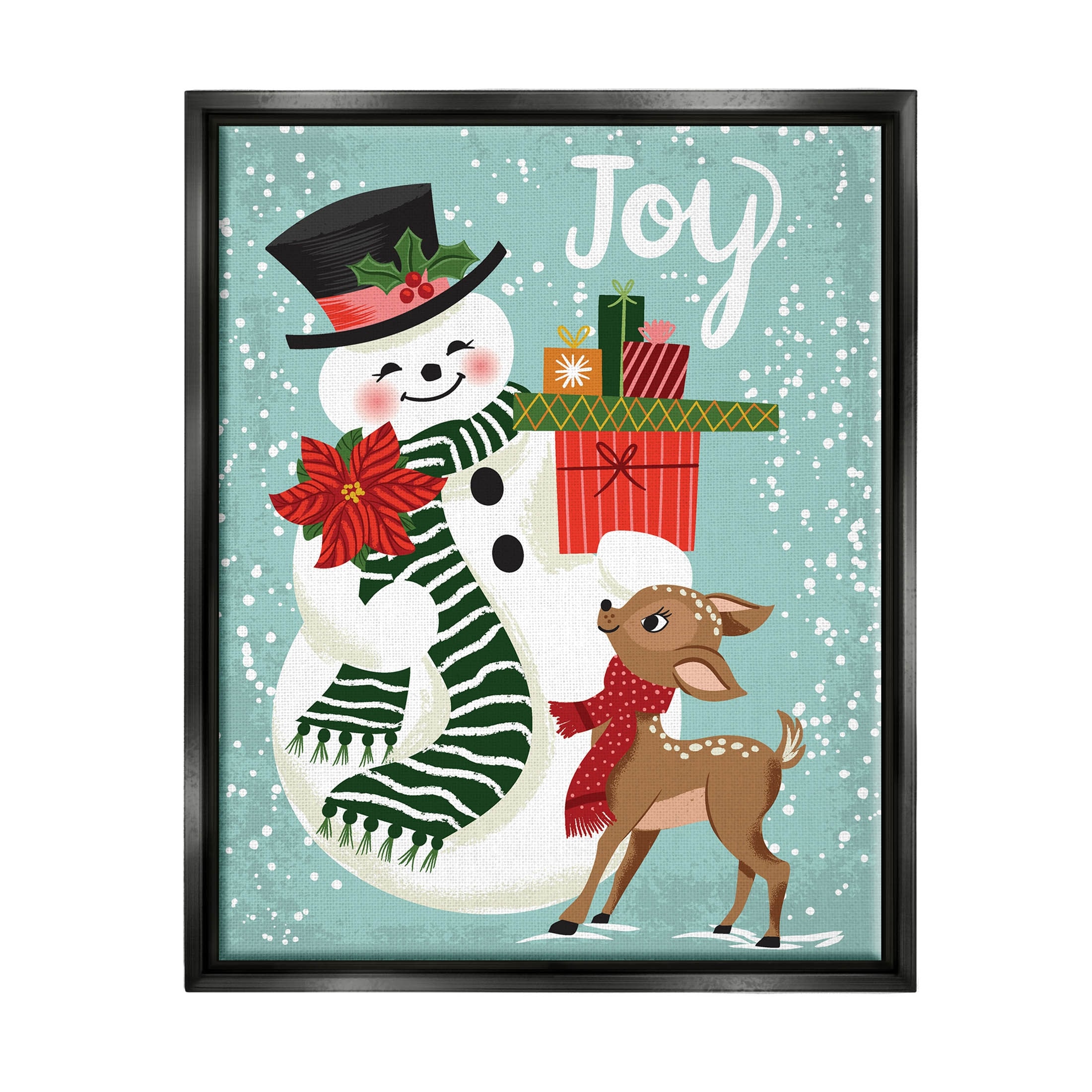 Stupell Joy Smiling Snowman Holiday Deer Floater Canvas Wall Art by Arrolynn Weiderhold