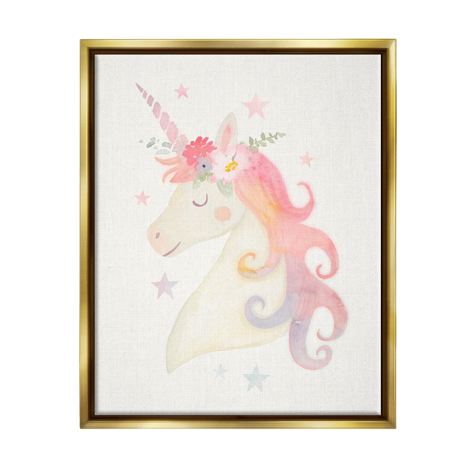 Stupell Industries Charming Unicorn Smiling Flower Crown Stars Design Floater Frame, Design by Victoria Barnes