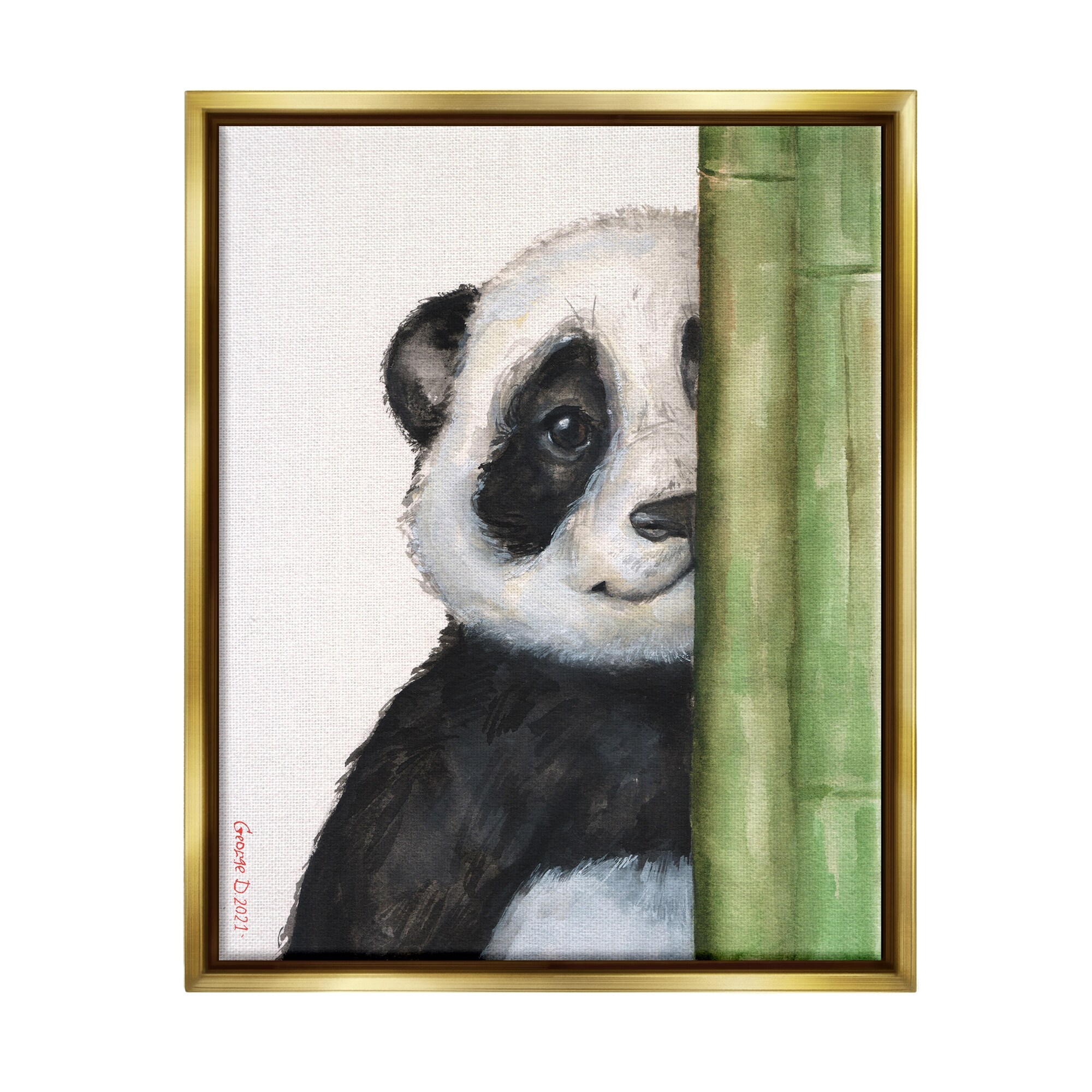 Stupell Industries Panda Bear Peering Around Bamboo Smiling Animal Floater Frame, Design by George Dyachenko
