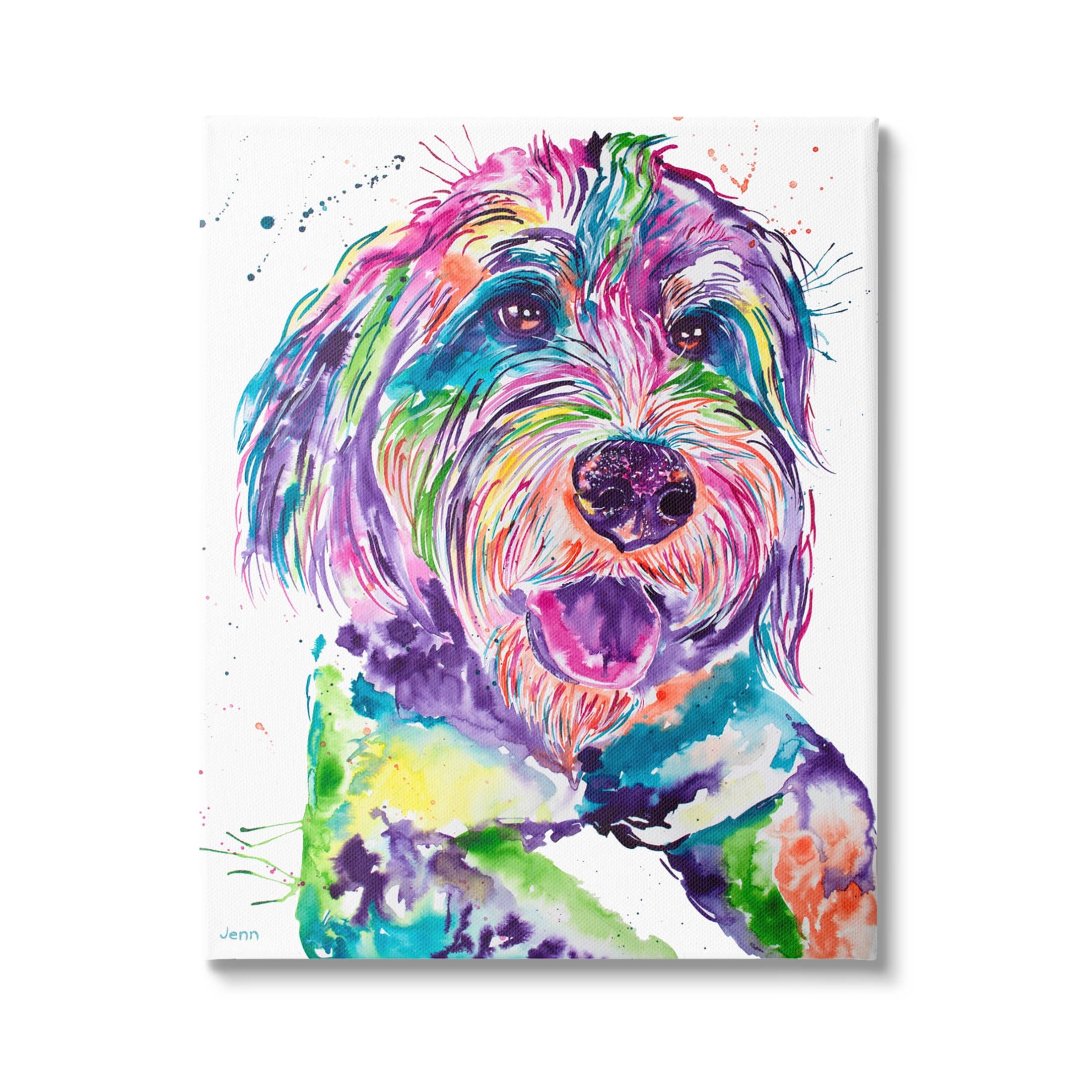 Stupell Industries Smiling Terrier Modern Vivid Dog Canvas Wall Art by Jen Seeley