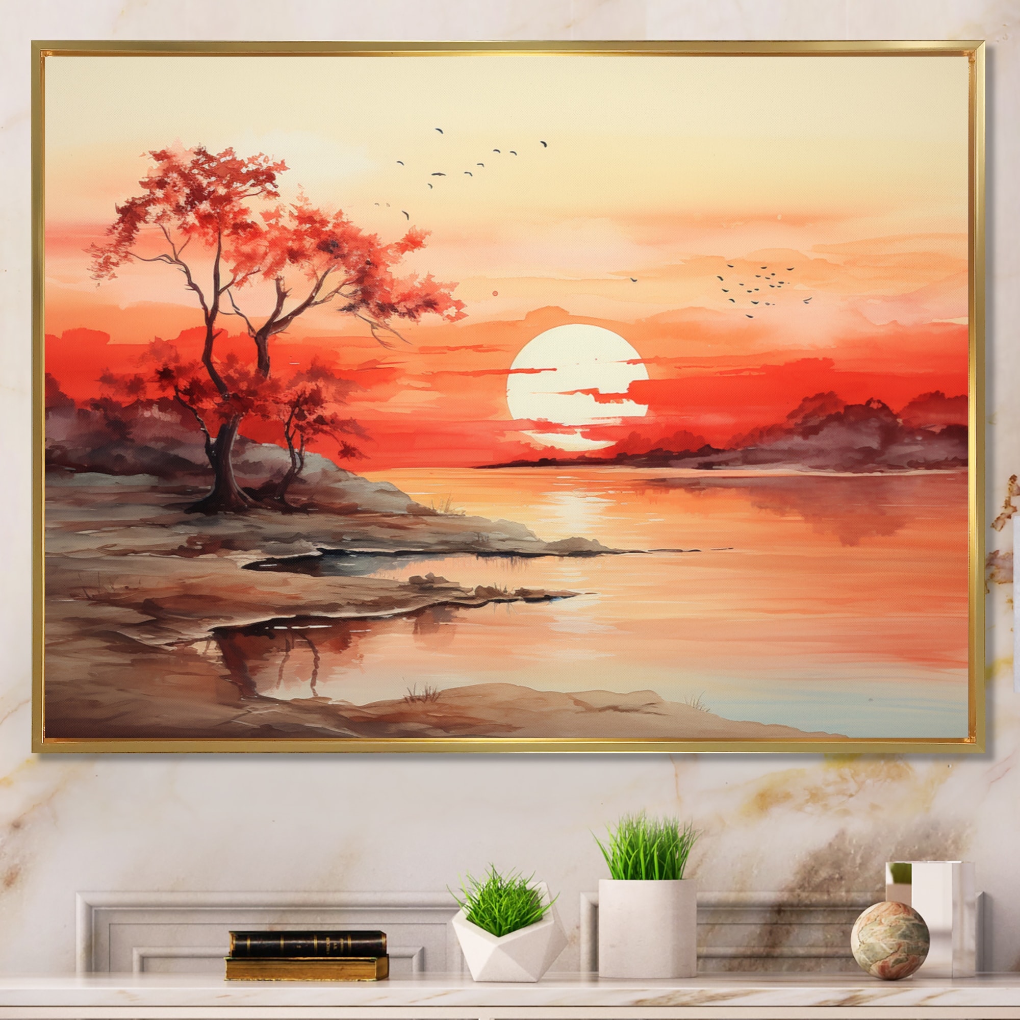 Designart "Peach Brown Sunrise Splendor" Sunrisesunset Framed Canvas Print