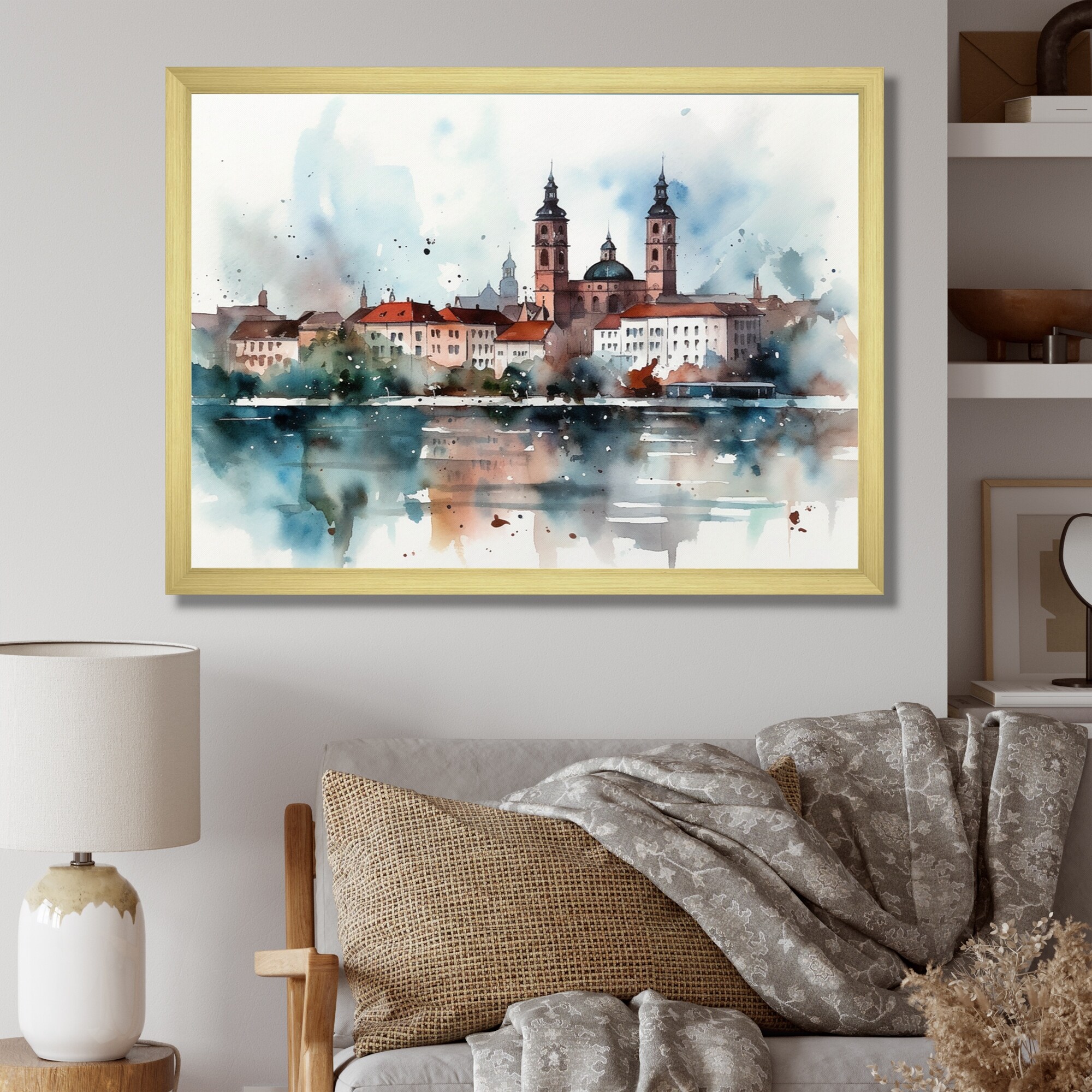 Designart "Brown And White Munich in Golden Splendor" City Art Deco Framed Canvas Prints