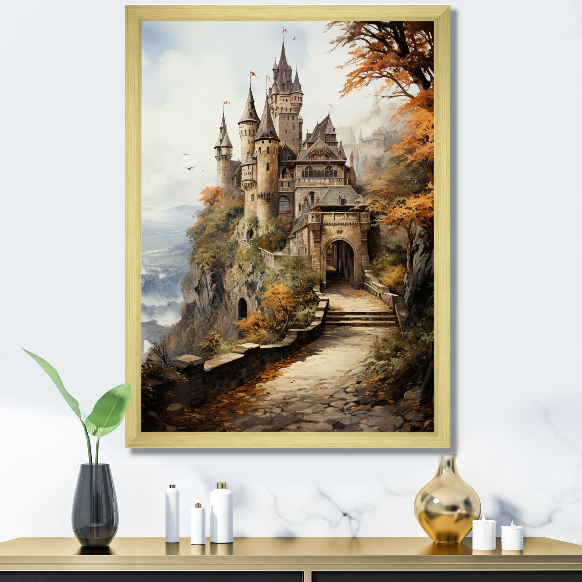 Designart "Castles Medieval Splendor Rich" Castles Framed Canvas Wall Art