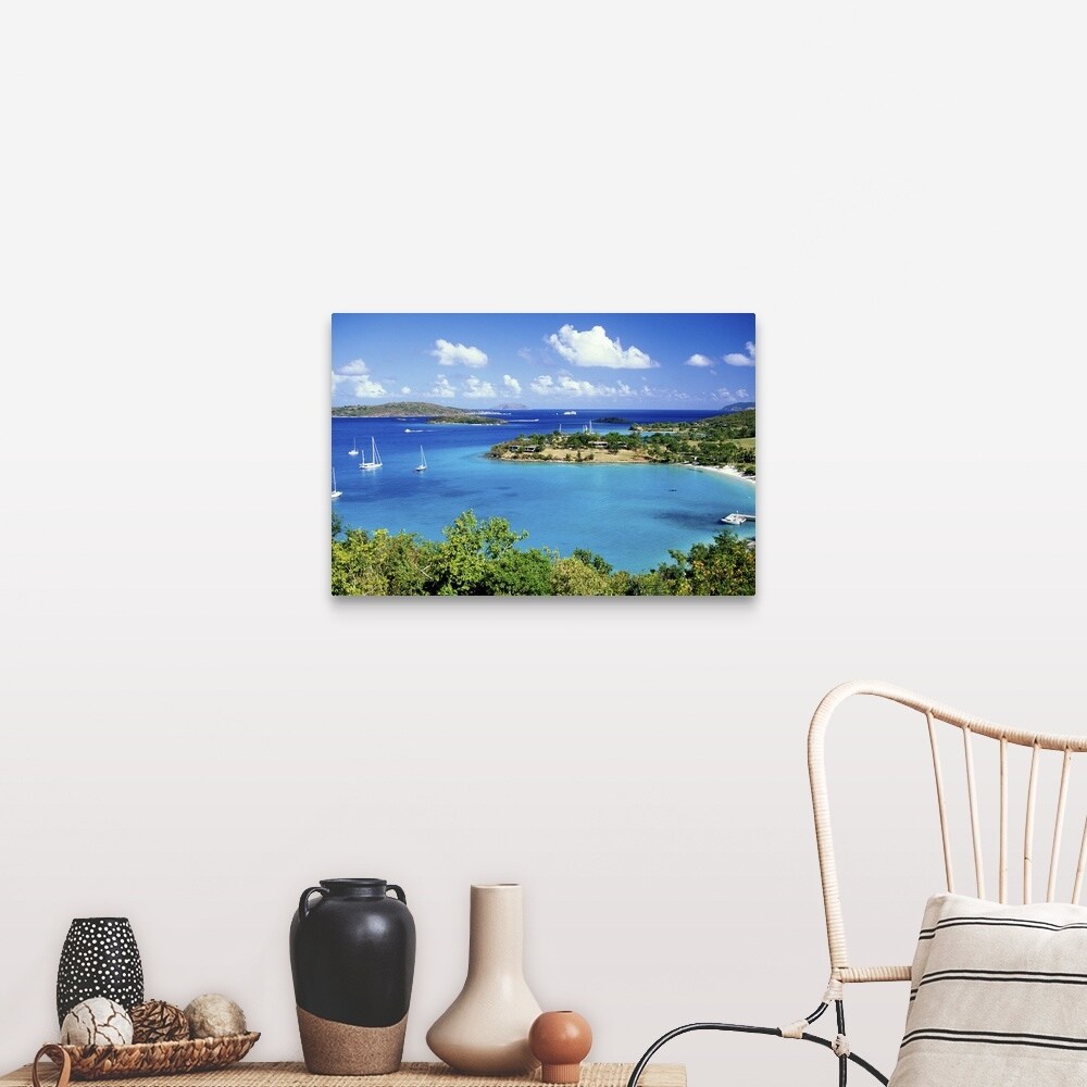 "US Virgin Islands, St. John, Virgin Islands National Park, Panoramic view of Hawksnest Bay" Canvas Wall Art