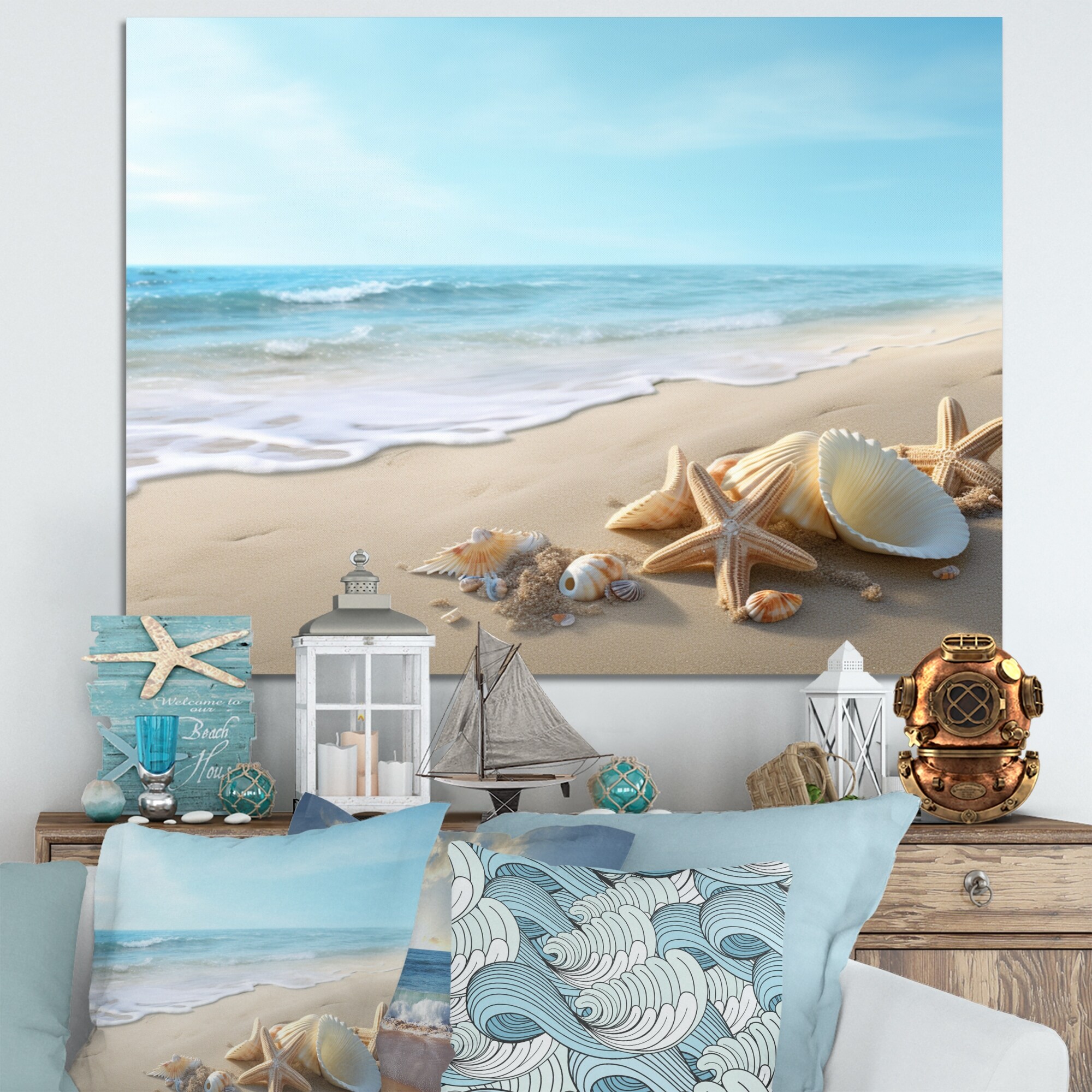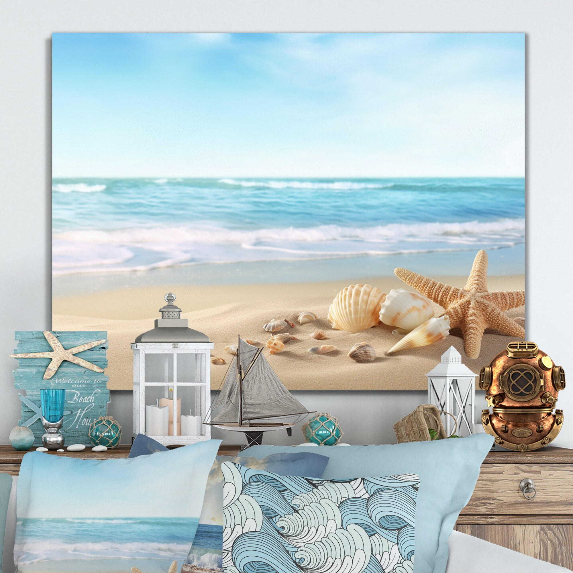 Designart "Starfish And Seashells Iii" Modern Landscape Beach Canvas Prints