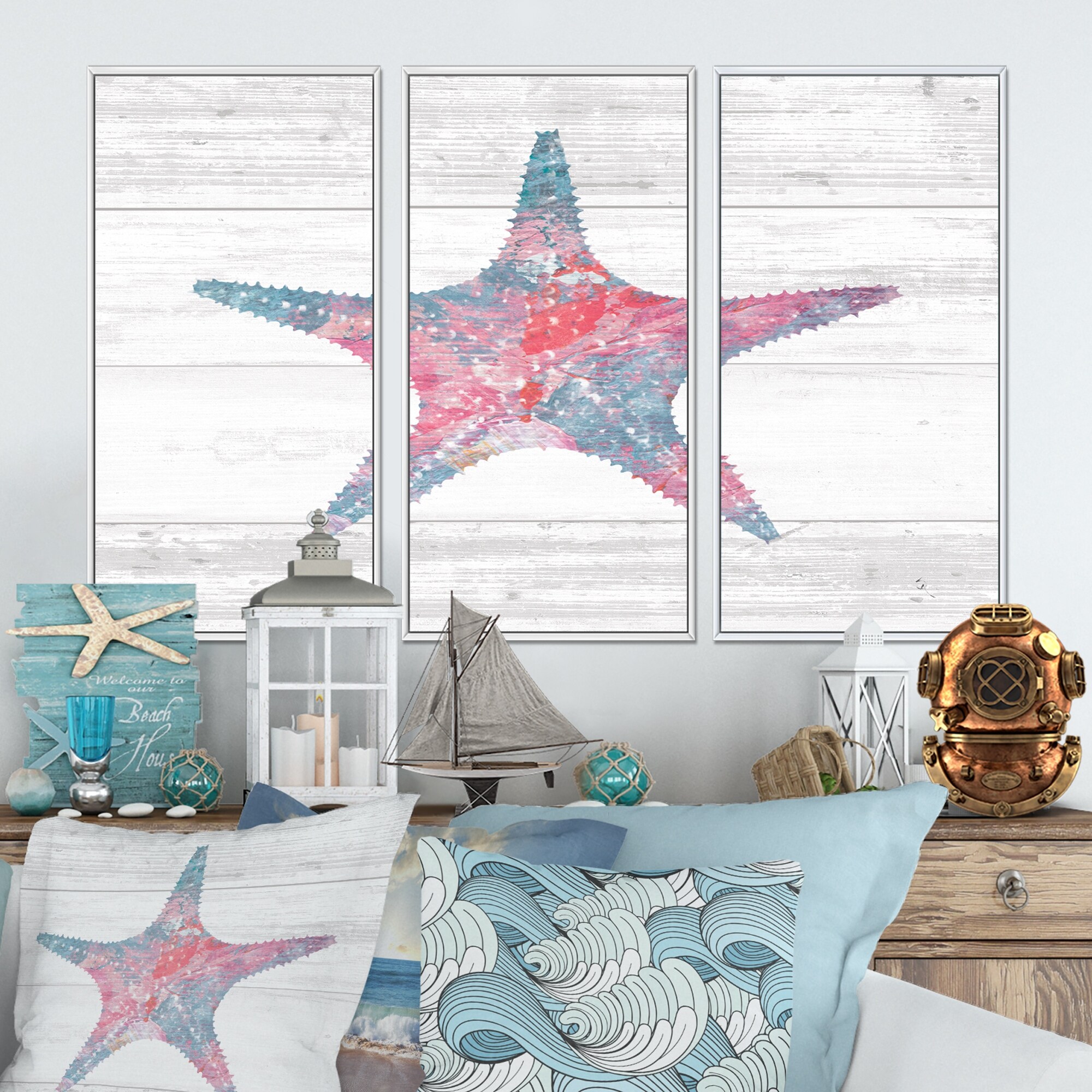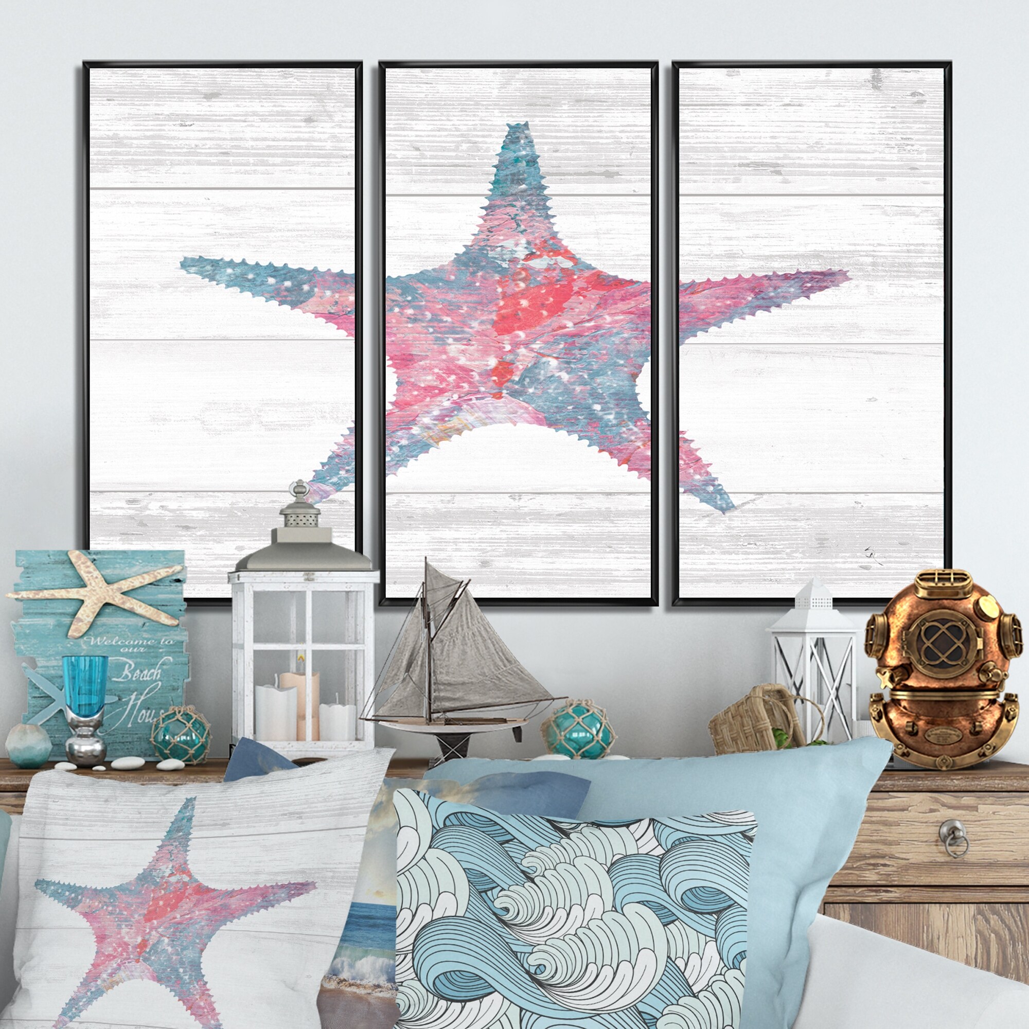 Designart "Pink Starfish Ocean Life" Nautical & Coastal Framed Wall Art Set of 3 - 4 Colors of Frames