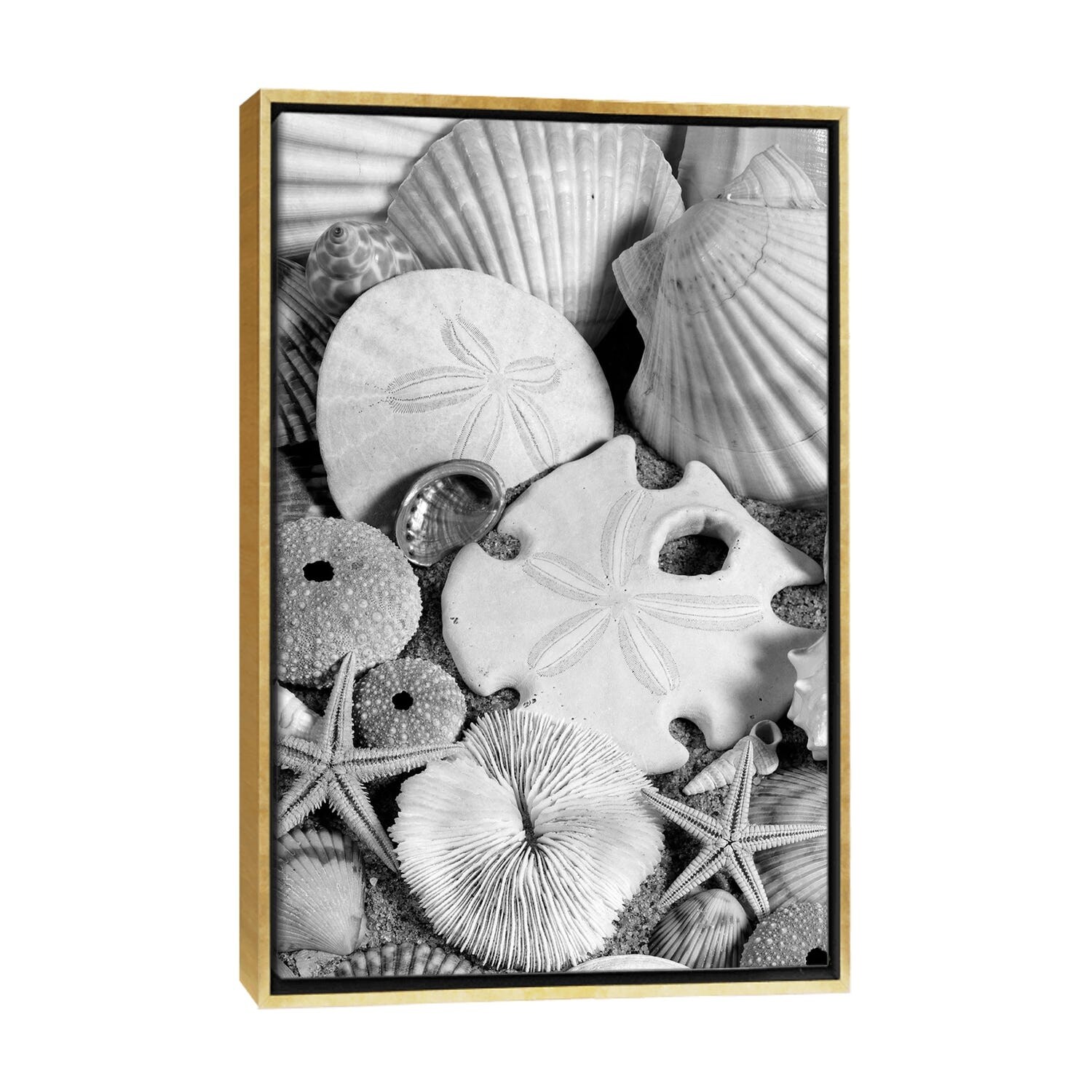 iCanvas "1980s Assortment of Seashells Sand Dollars Coral And Starfish on Sand" by Vintage Images Framed Canvas Print