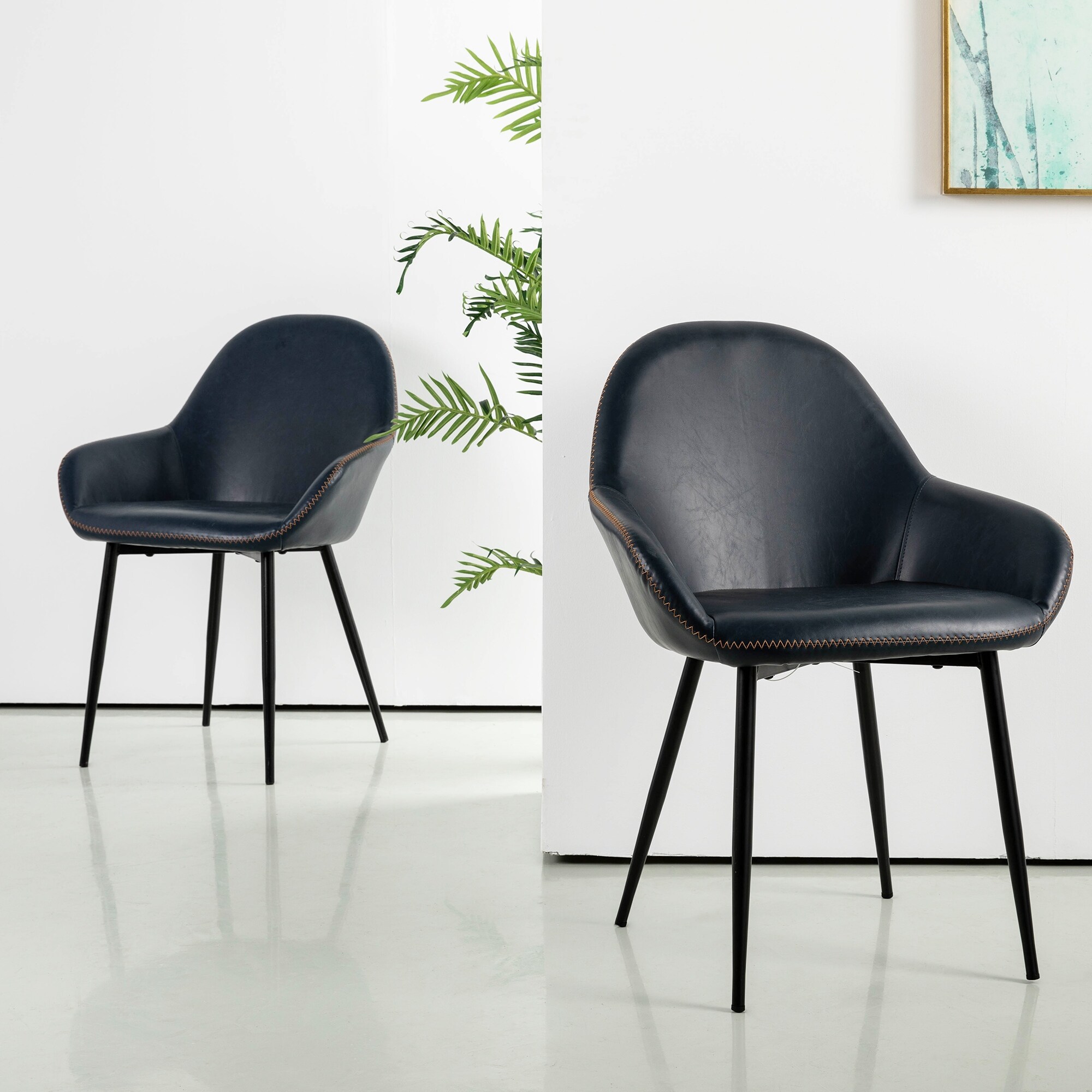 Glitzhome Mid-Century Modern Leatherette Stitched Accent Armchair Dining Chair (Set of 2)