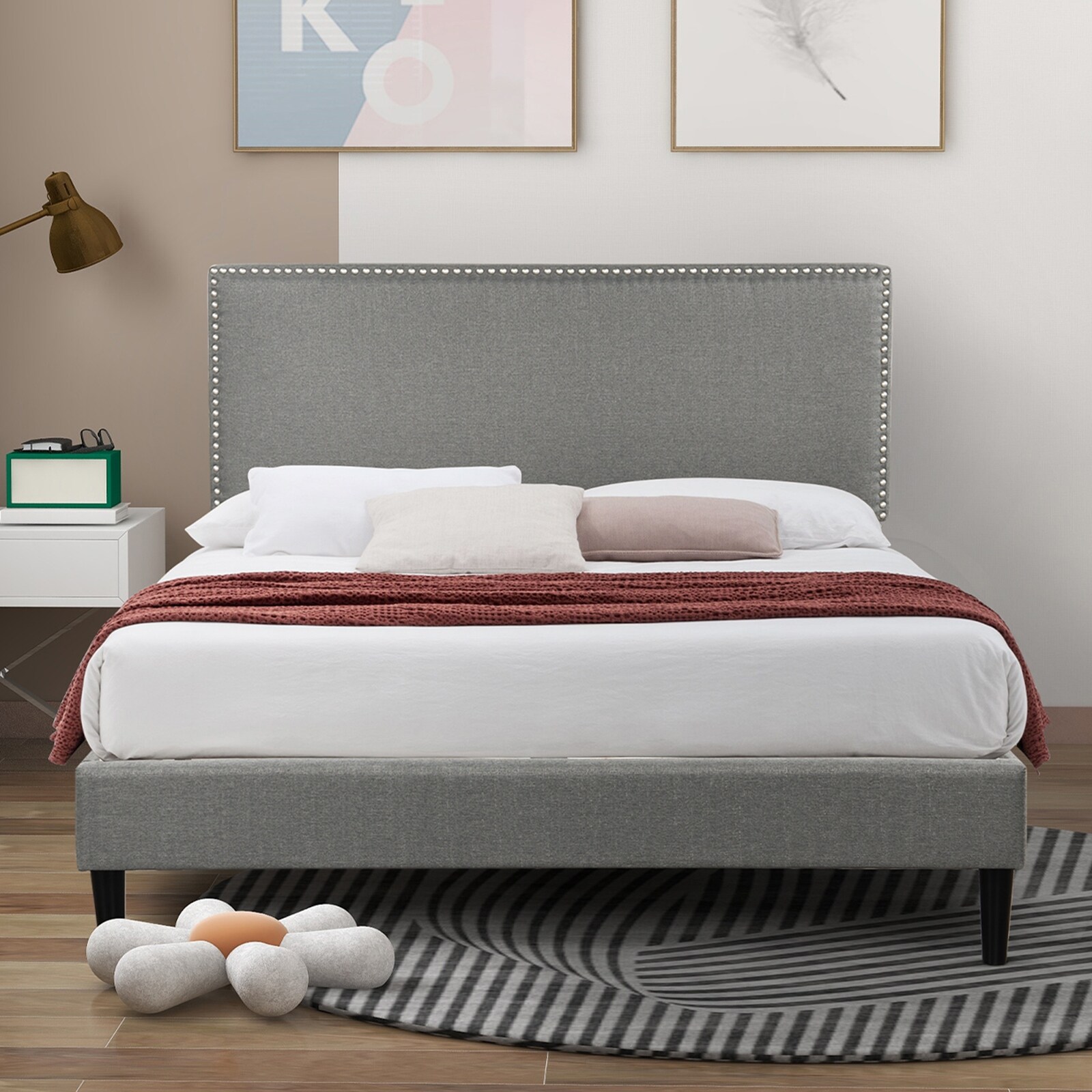 CraftPorch Clean-Lines Stitching Linen Upholstered Bed
