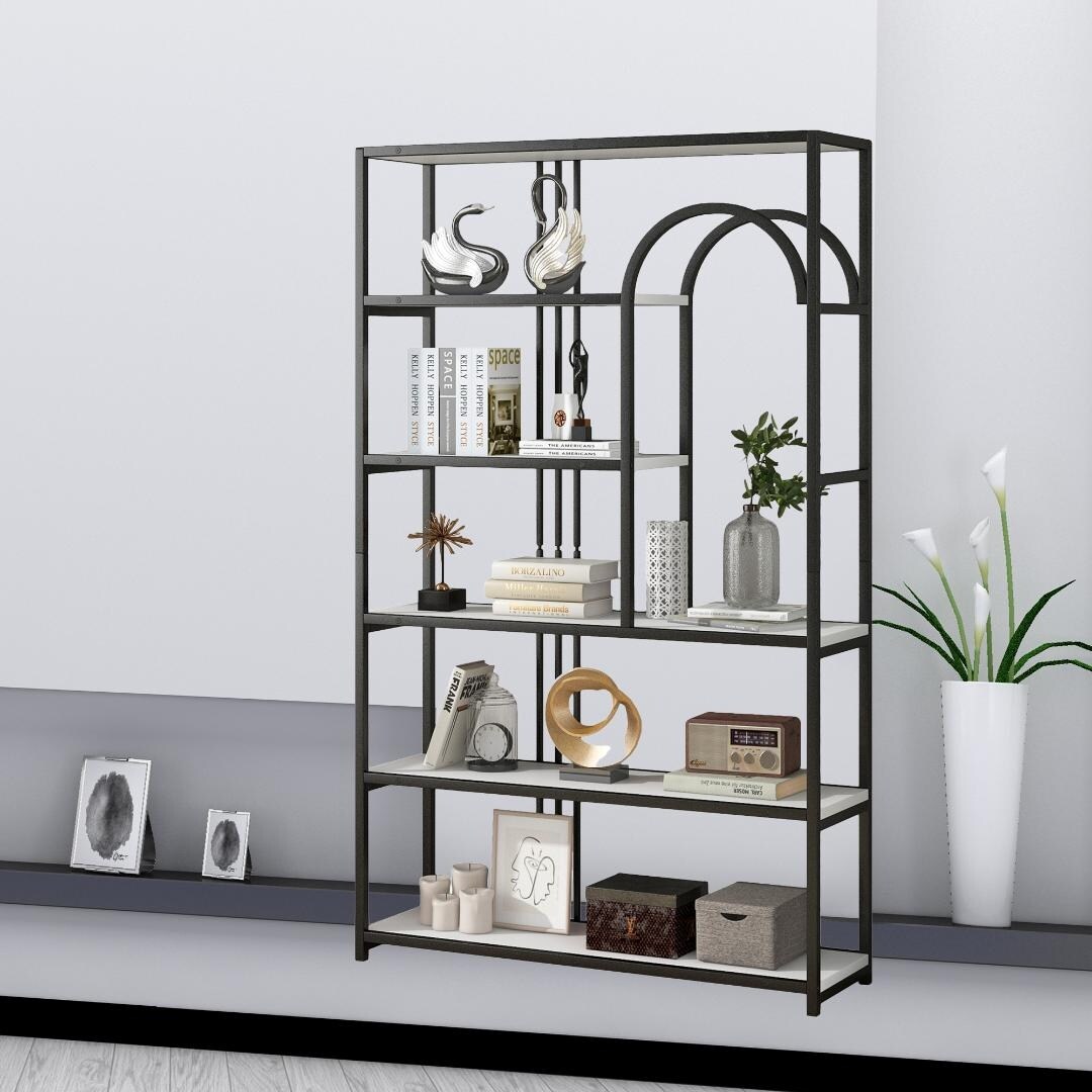 Porch & Den Madrid Adjustable 6 Shelf Bookcase, Open Storage Home Office Bookshelf