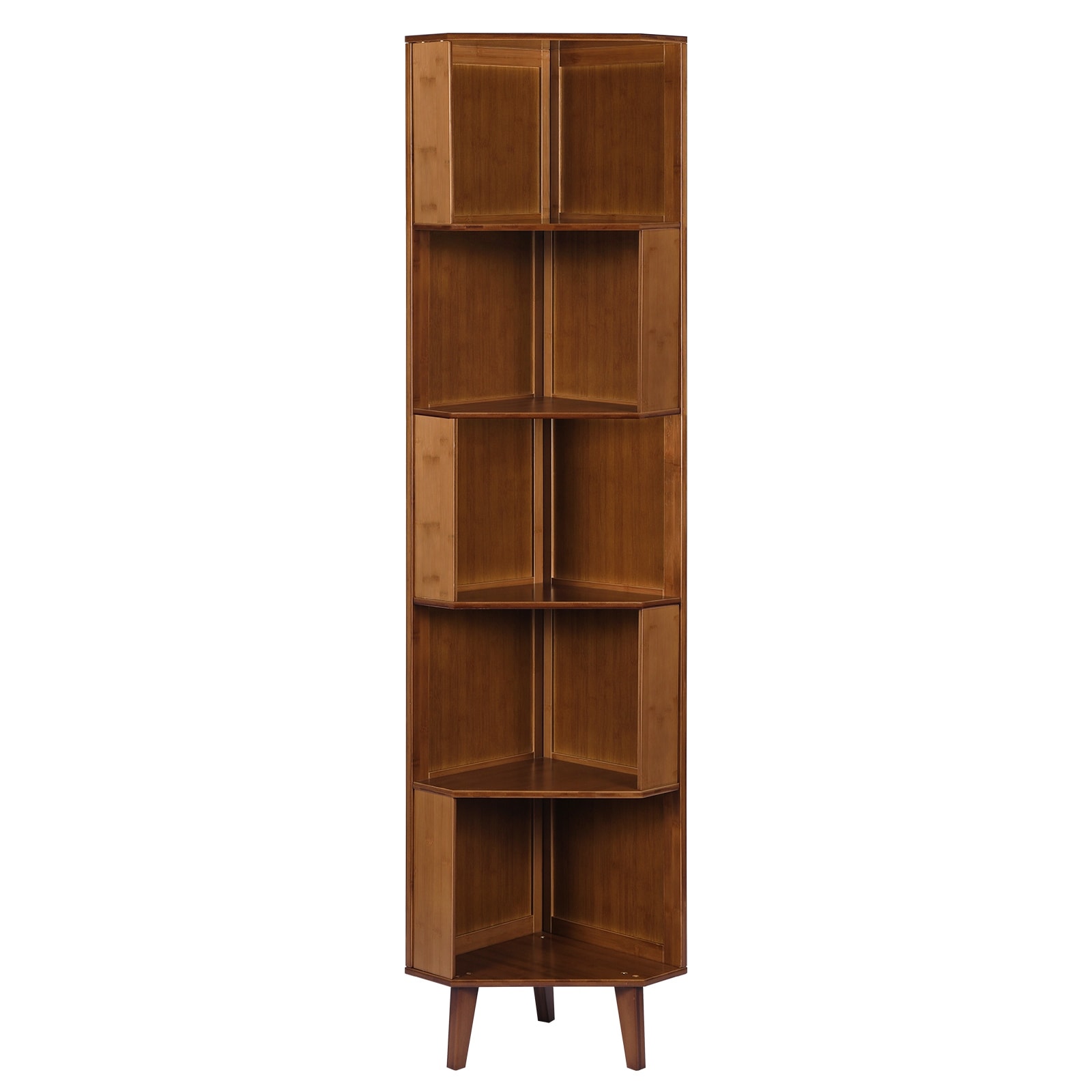 5 Tier Freestanding Bamboo Corner Shelf Storage Bookcase