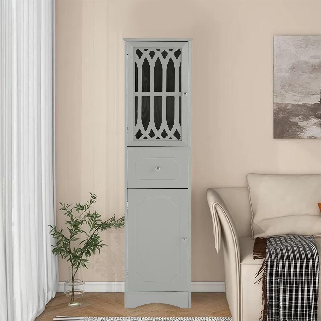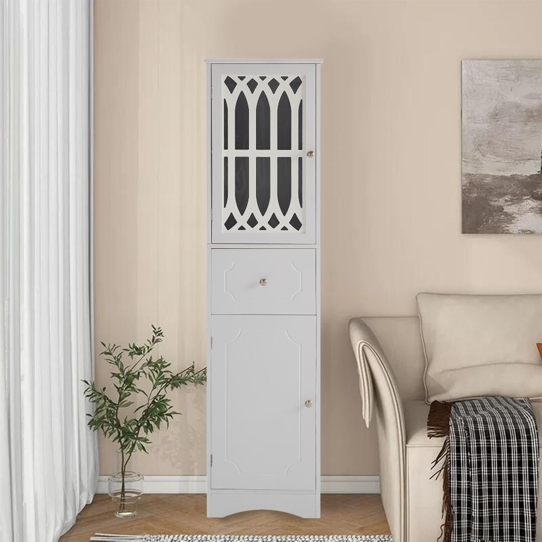 Tall Bathroom Cabinet, Freestanding Storage Cabinet with Drawer and Doors, MDF Board, Acrylic Door, Adjustable Shelf