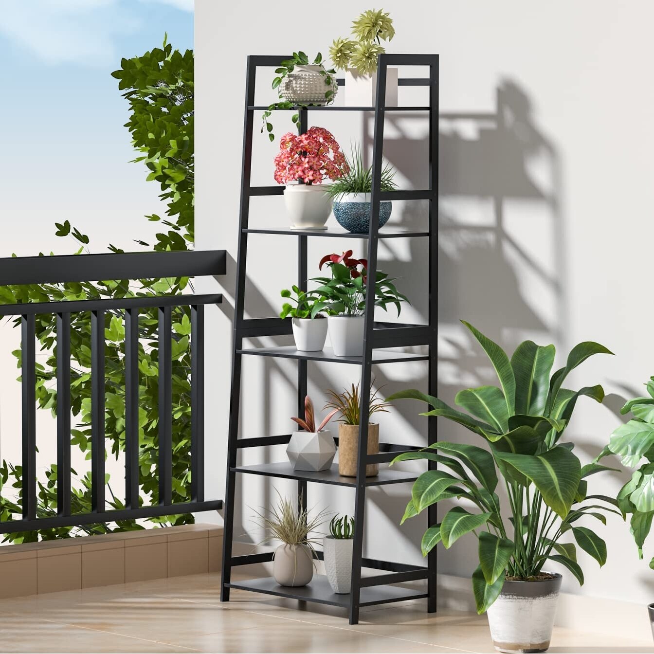 5 - Tier Ladder Shelf Bookshelf Bookcase for Living Room, Storage Display Leaning