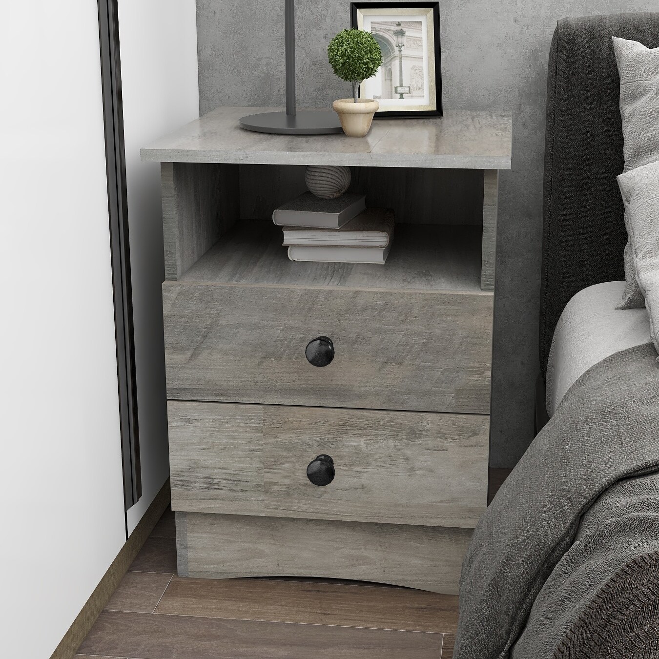 Set of 2 Bedroom Storage Nightstand Shelf with 2 Drawers
