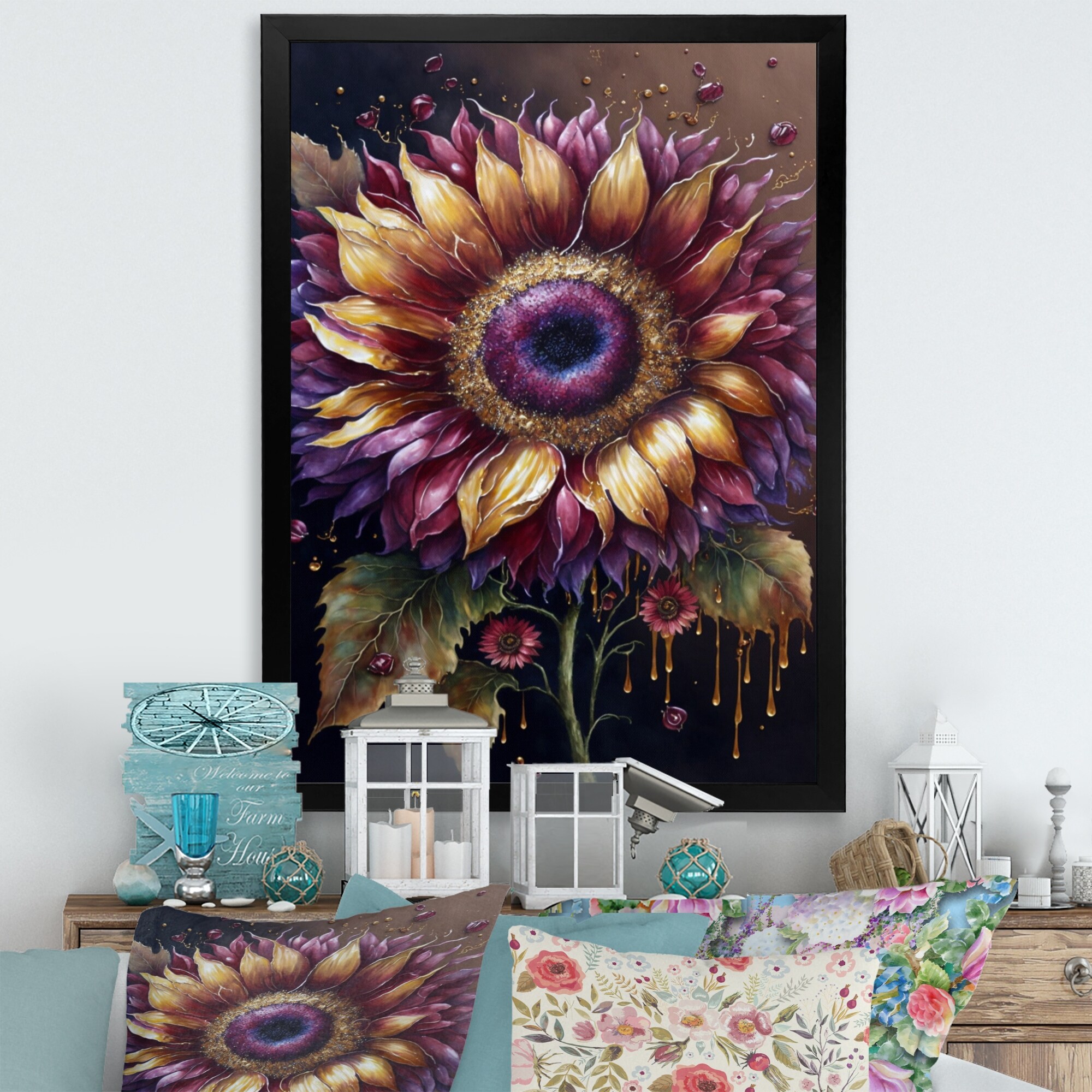 Designart "Yellow And Purple Sunflower" Floral & Botanical Framed Art Print
