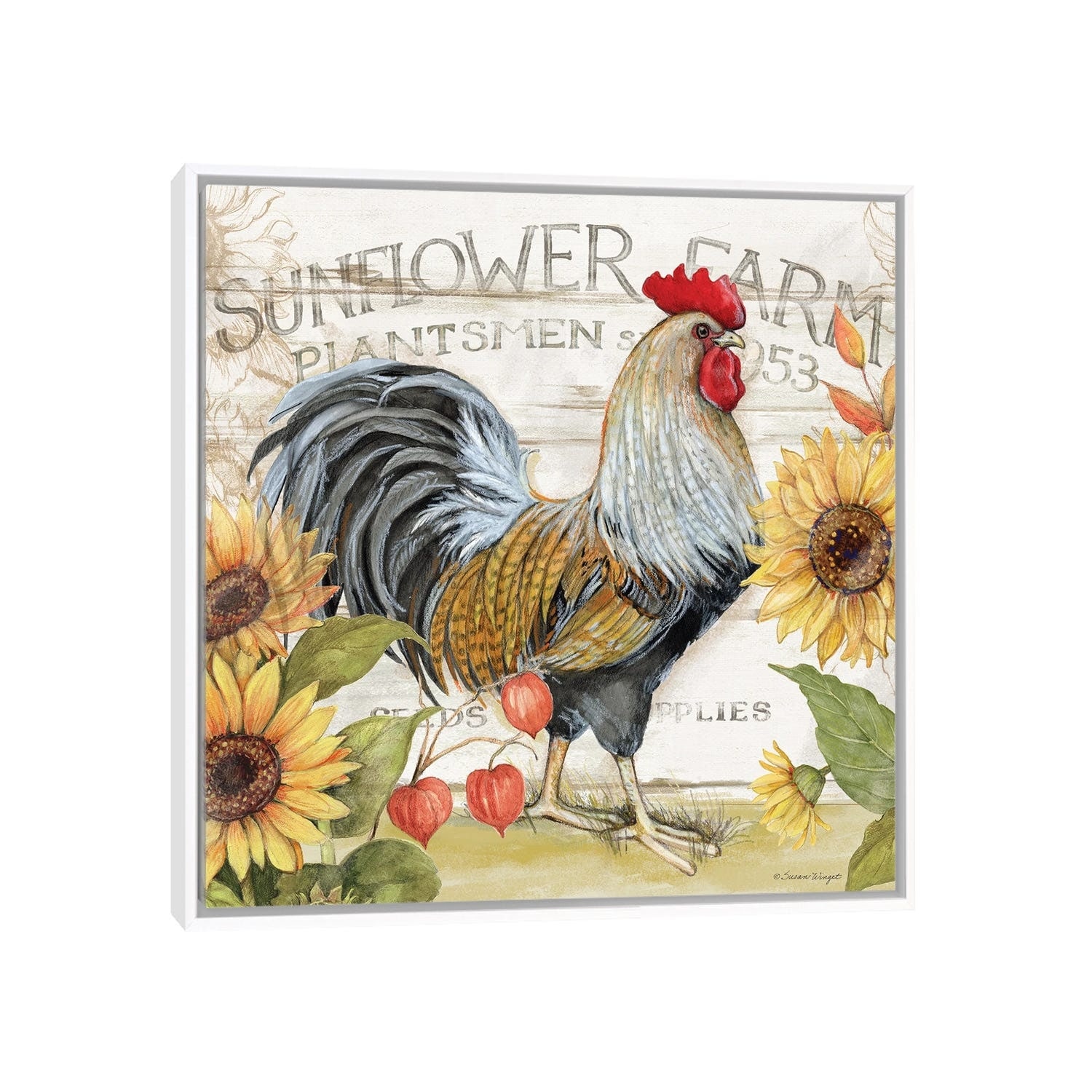 iCanvas "Grey And Brown Rooster Sunflowers" by Susan Winget Framed Canvas Print