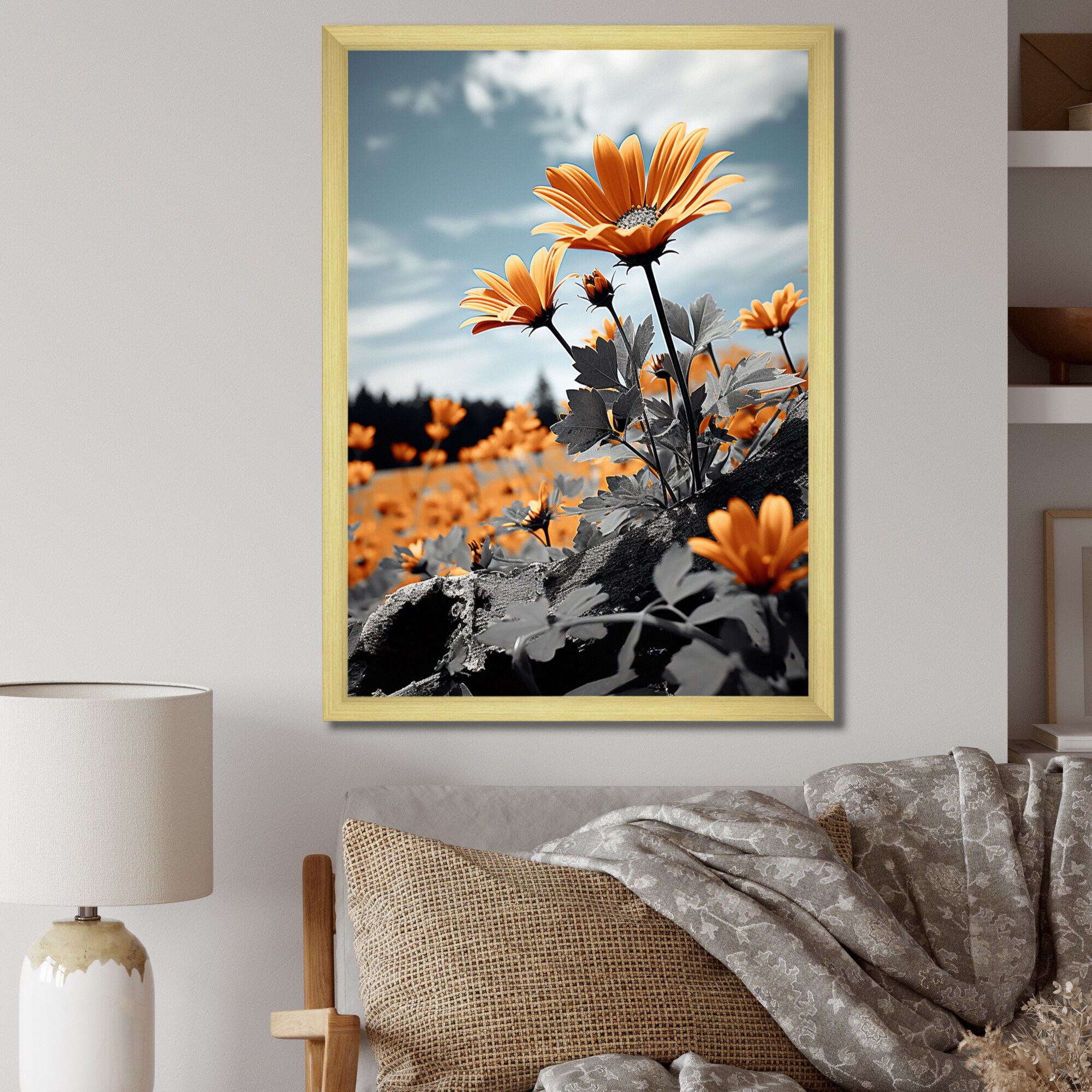 Designart "Yellow Grey Monochrome Sunflower Field" Sunflowers Framed Wall Art Prints