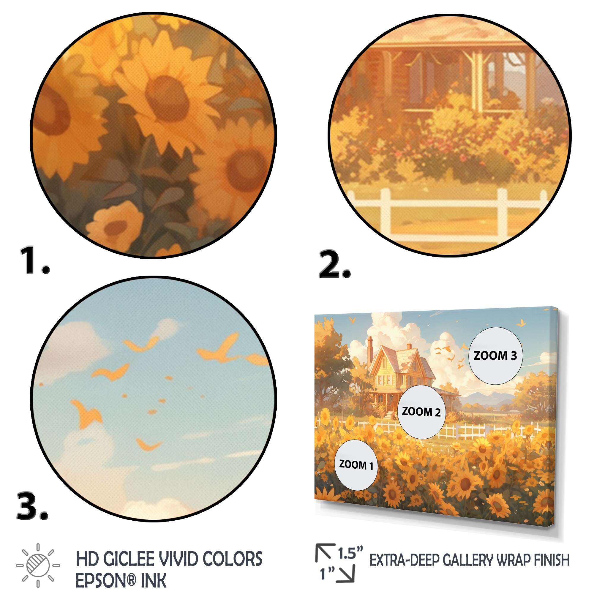 Designart "Golden Sunflower At the Farm I" Sunflowers Framed Wall Decor