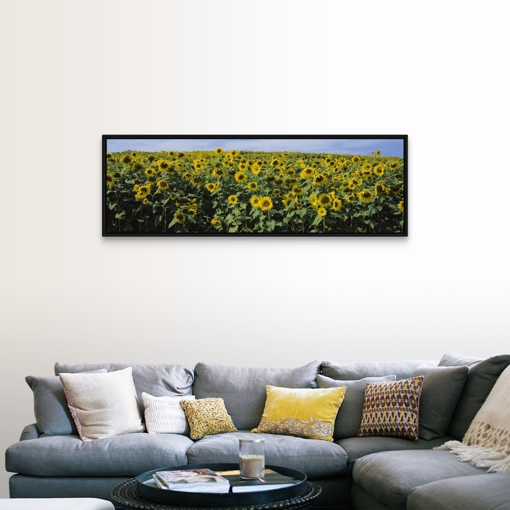 iCanvas "Sunflower Field At Sunset Panoramic View" by Melanie Viola Framed