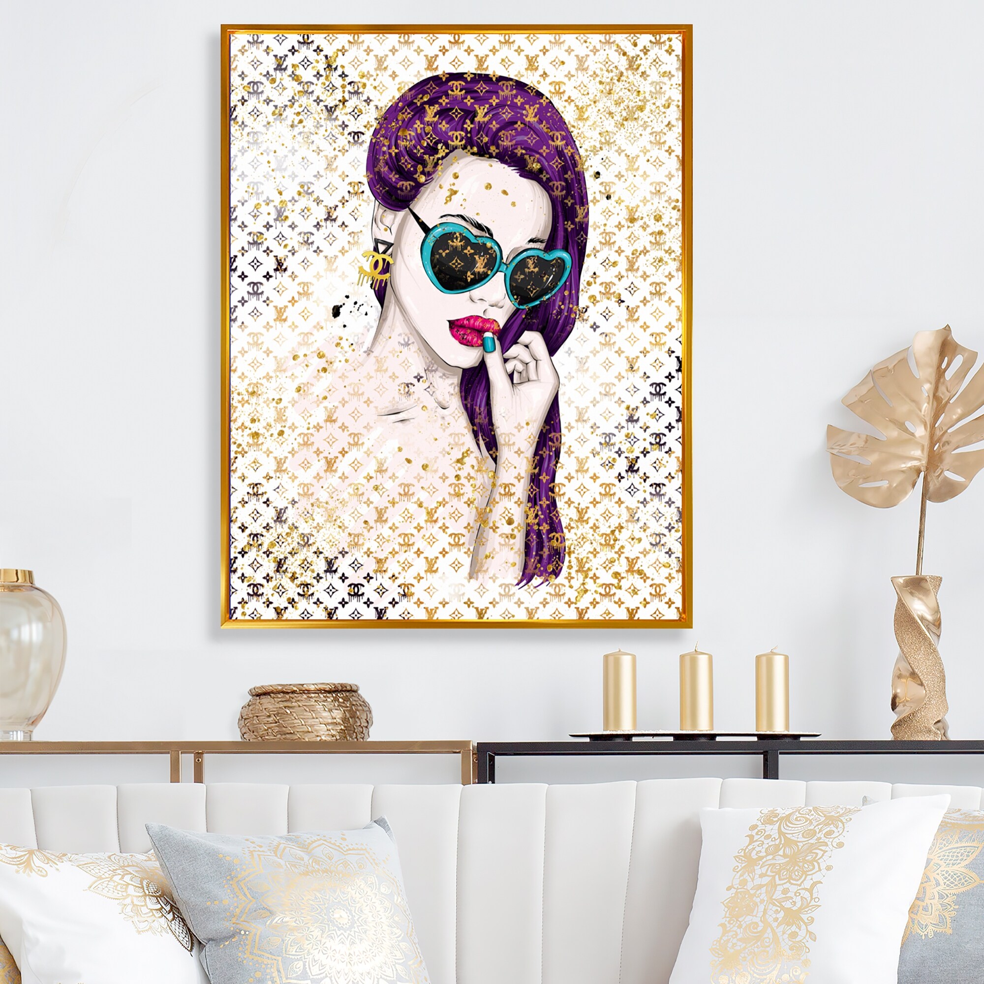 Designart "Trendy Female With Sunglasses III" Fashion Framed Canvas Art Print