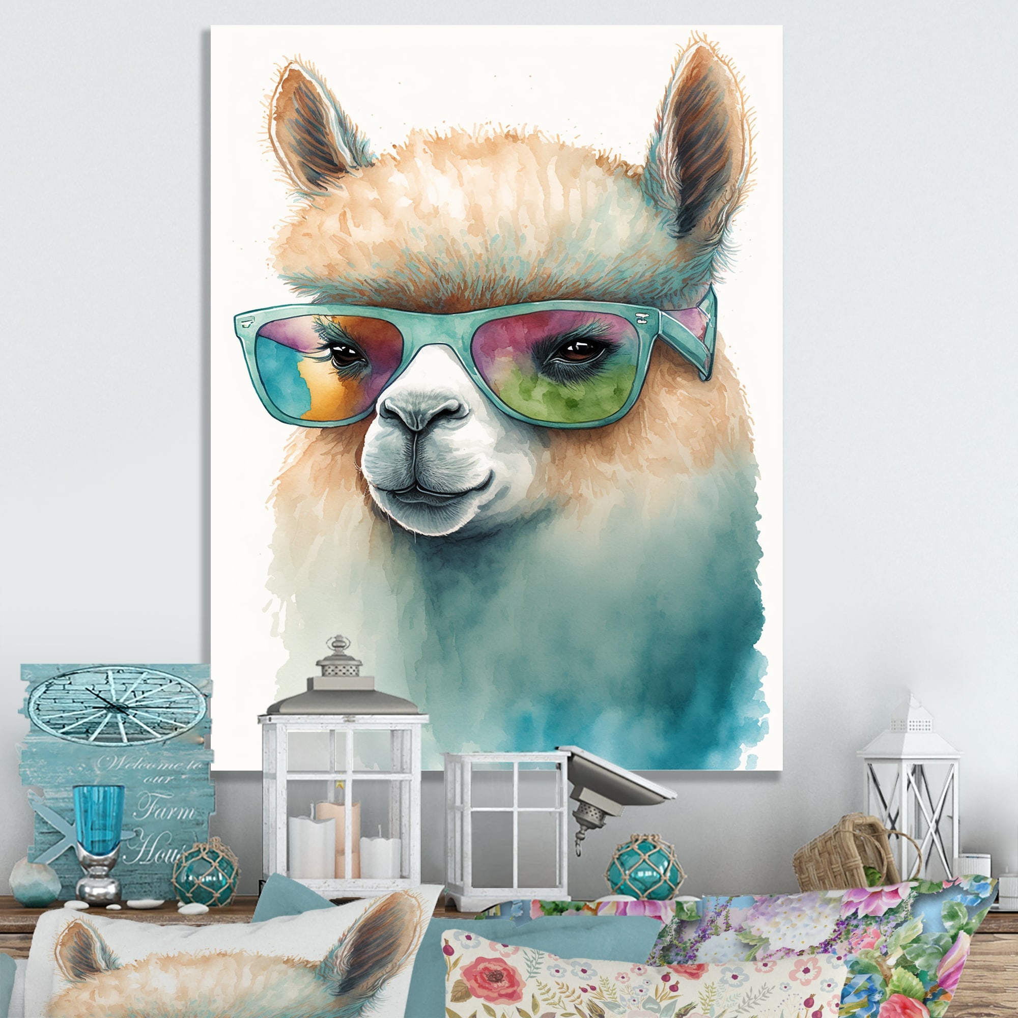 Designart "Cool Llama With Sunglasses Watercolour II" Animals Llama Canvas Wall Art