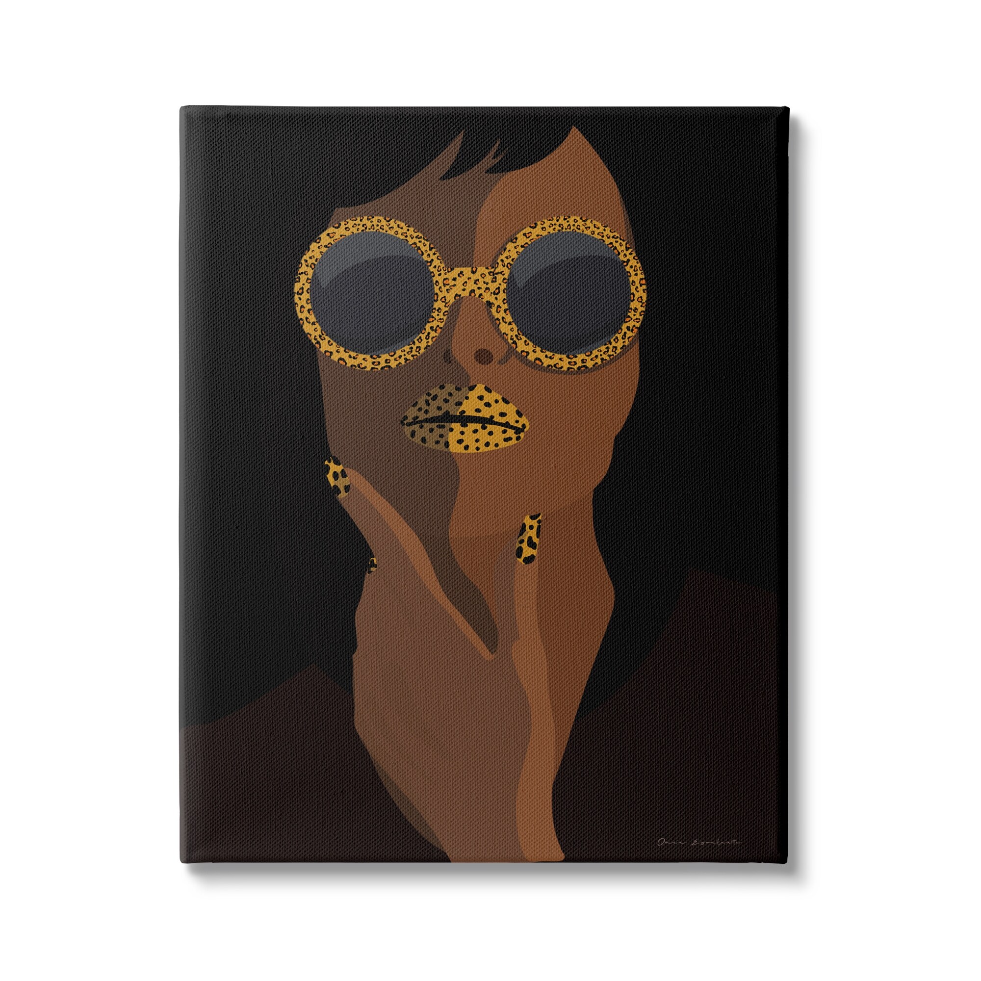 Stupell Industries Glam Female Portrait Leopard Print Sunglasses Patterned Lips Canvas Wall Art - Black