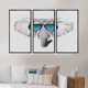 Designart "Elephant in Sunglasses" Animal Framed Artwork Set of 3 - 4 Colors of Frames