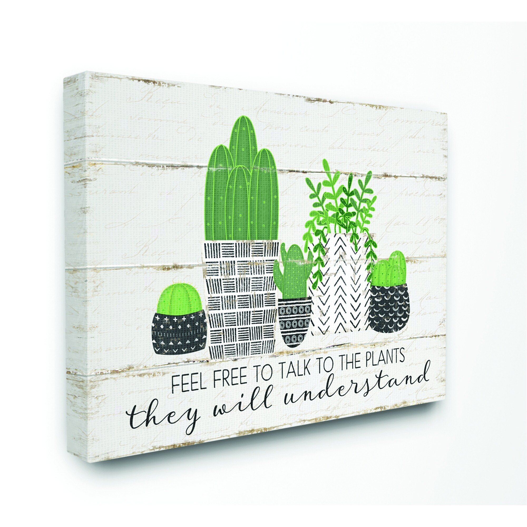 Stupell Industries Feel Free to Talk Cacti Succulents Wood Textured Design Canvas Wall Art