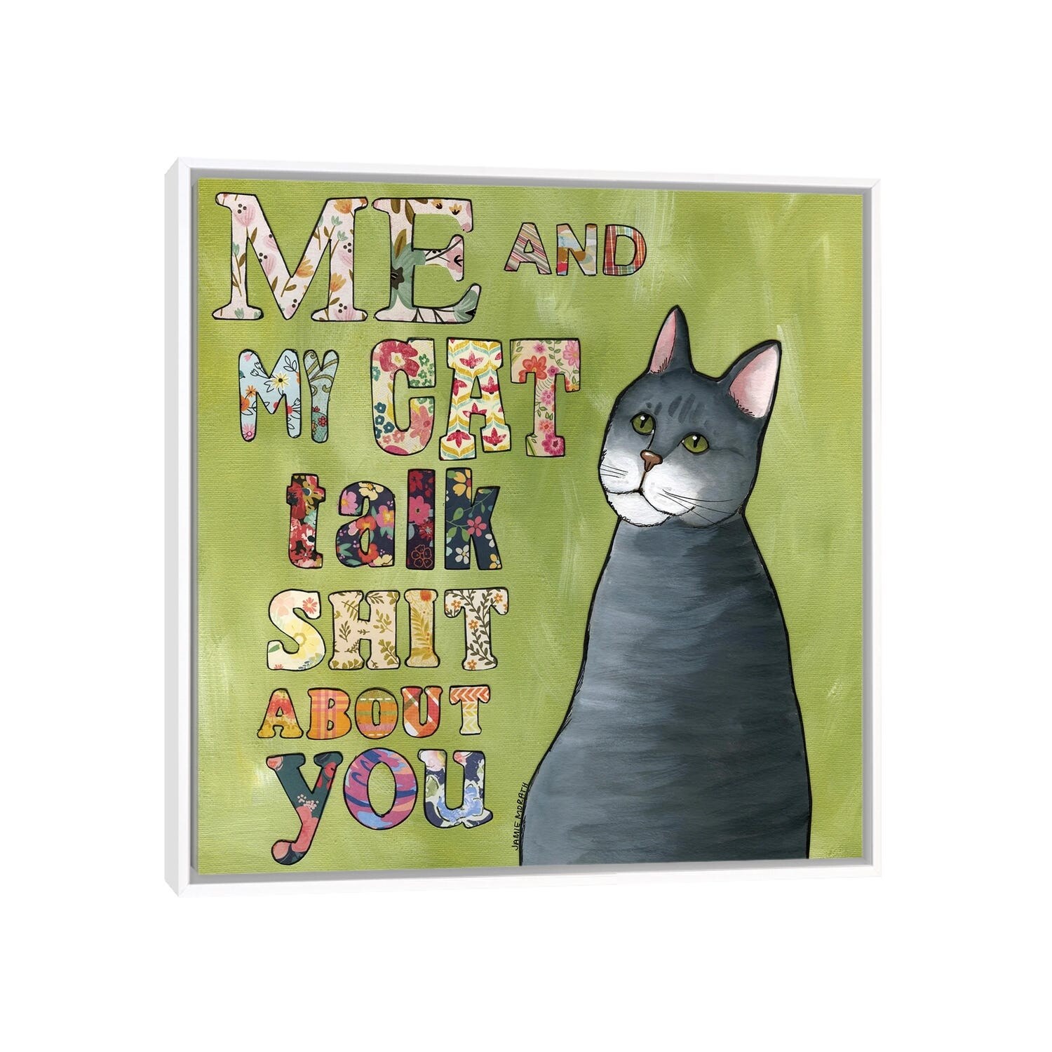 iCanvas "Talk Sh-t - Cat" by Jamie Morath Framed|White - 12x