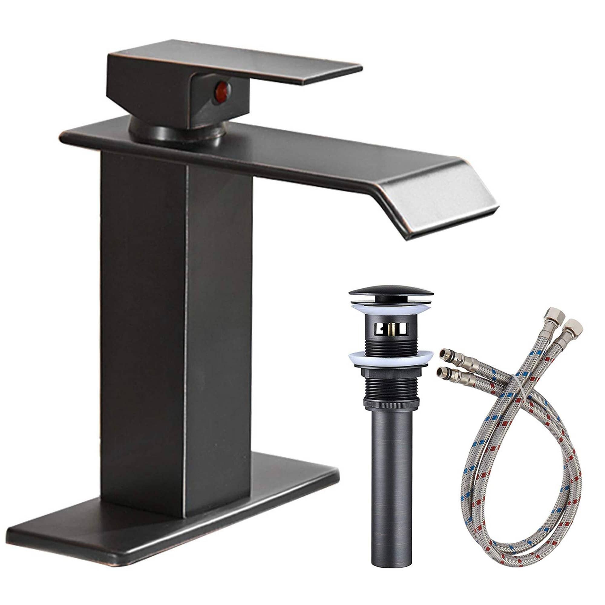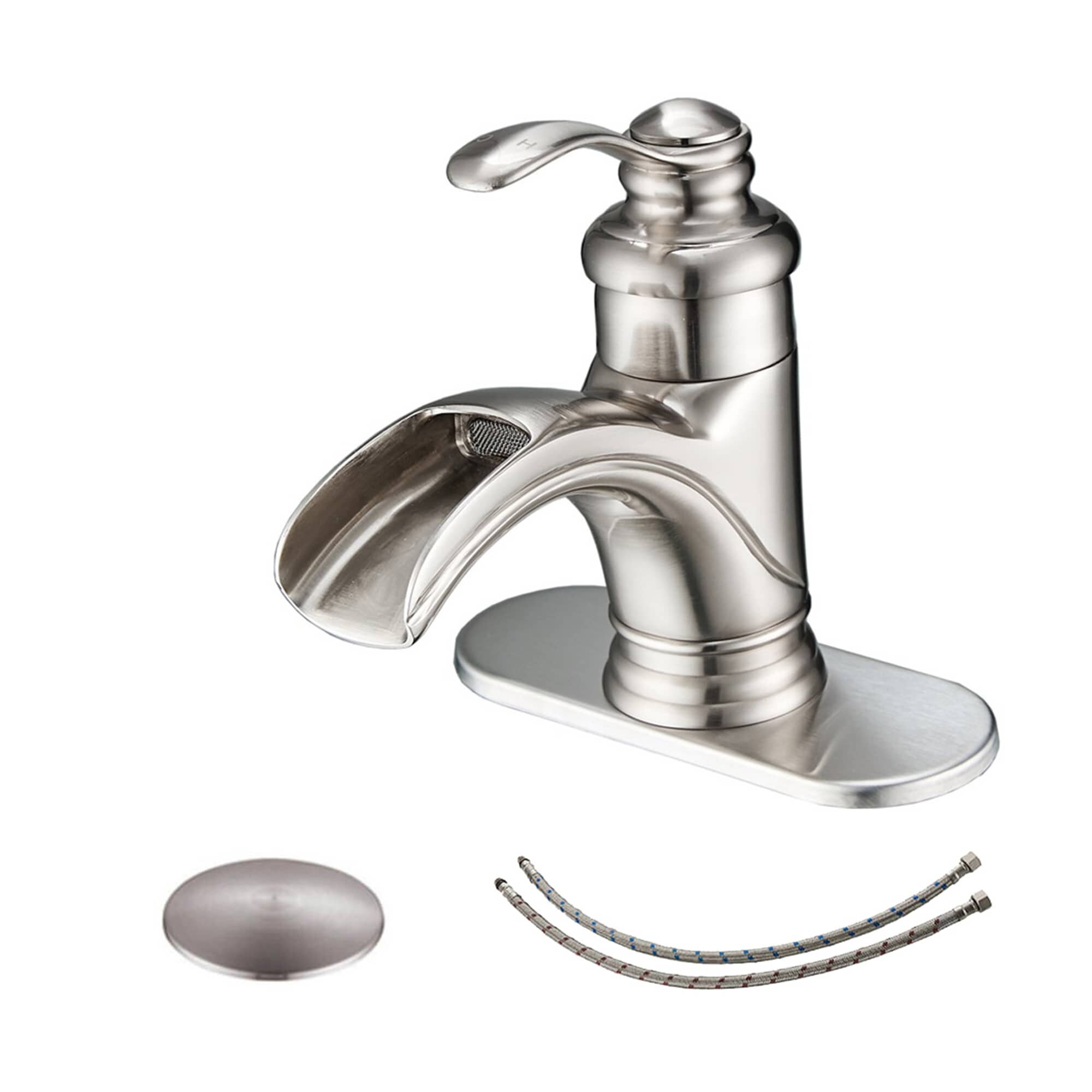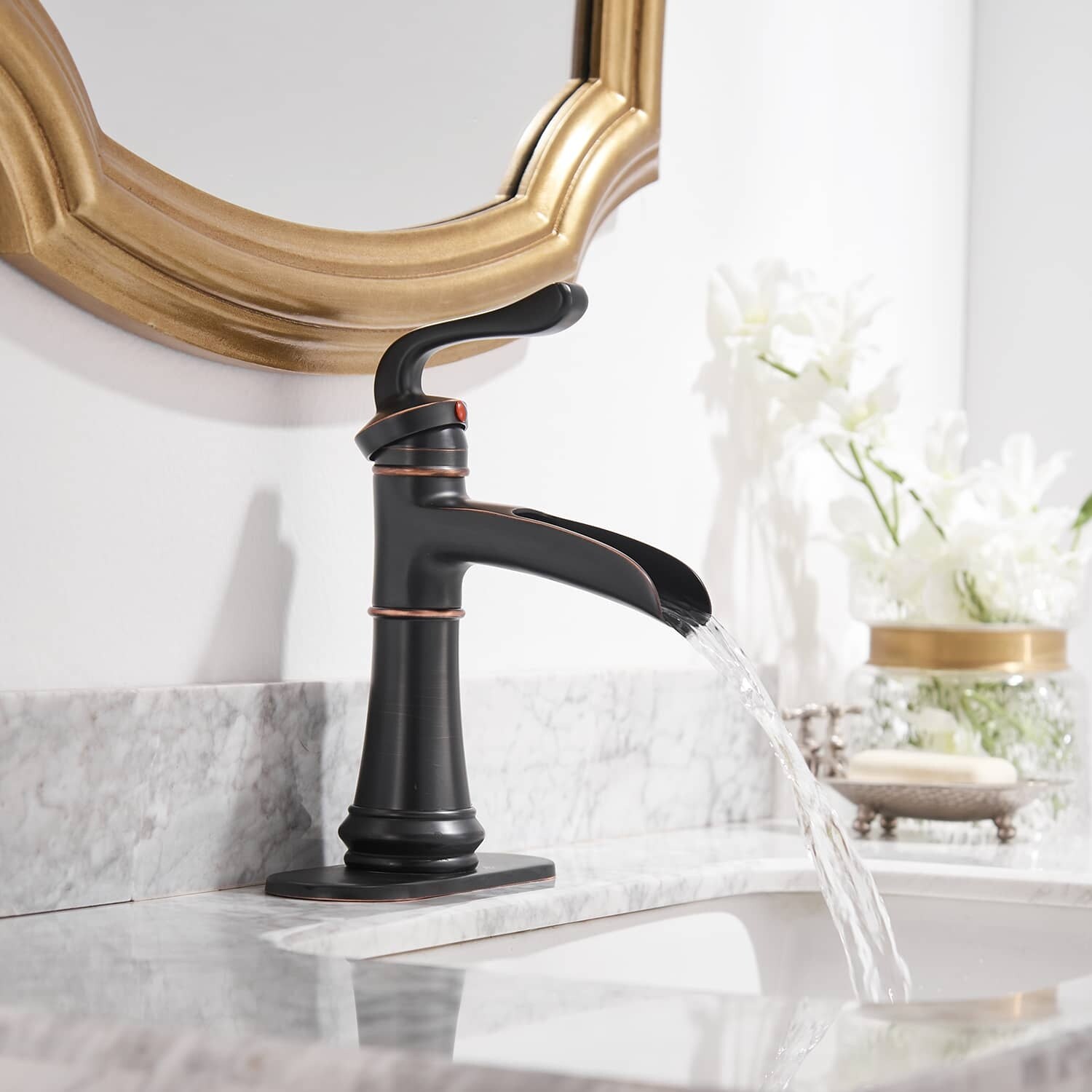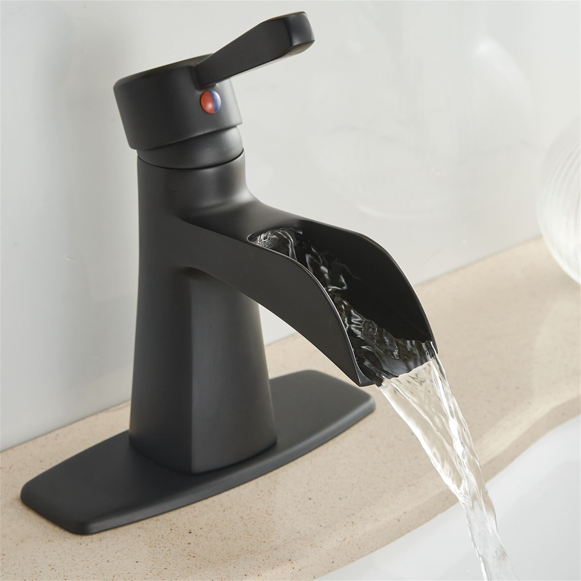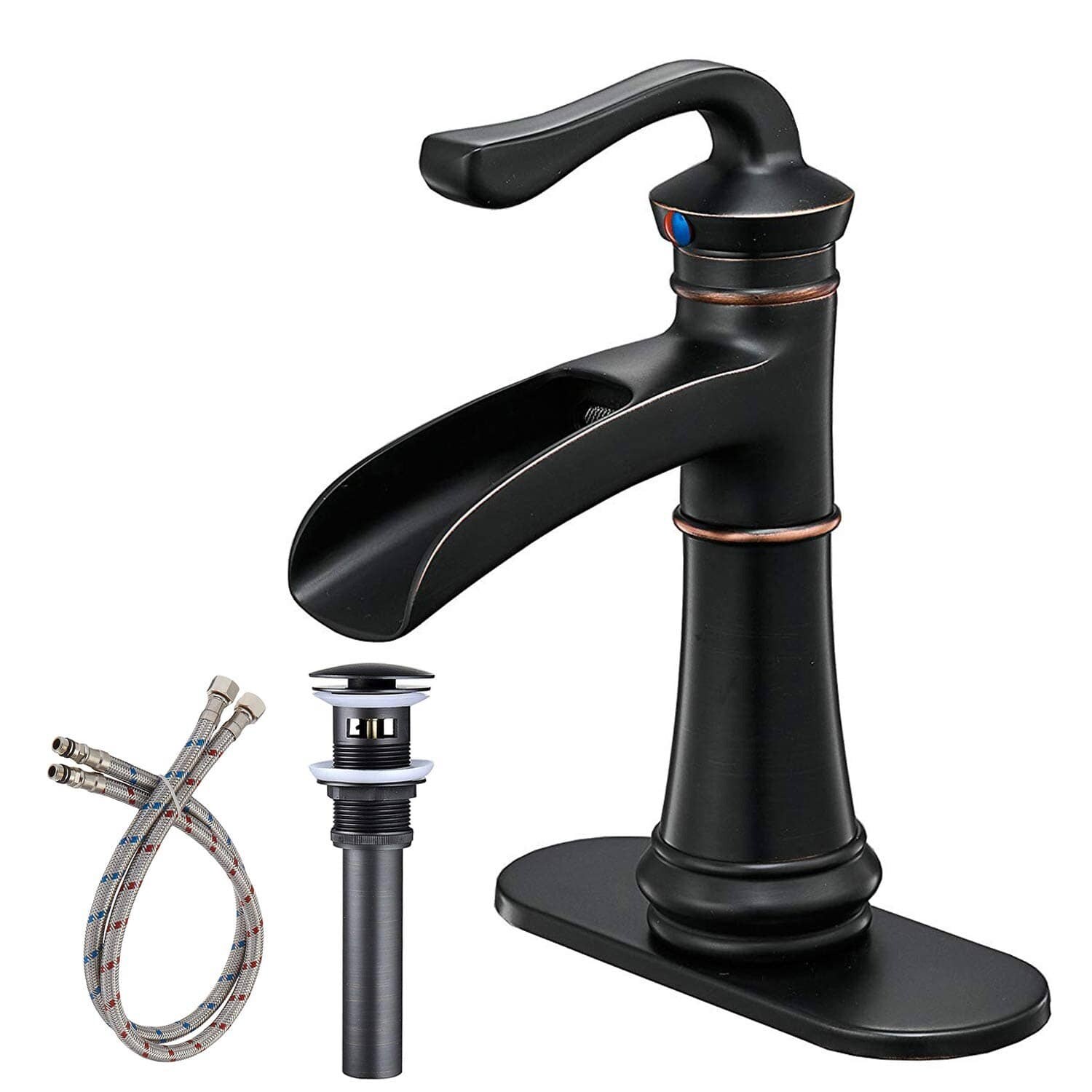 Single Handle Bathroom Faucet With Drain Assembly Waterfall Bathroom Sink Faucets Single Hole Basin Vanity Taps With Deck Plate