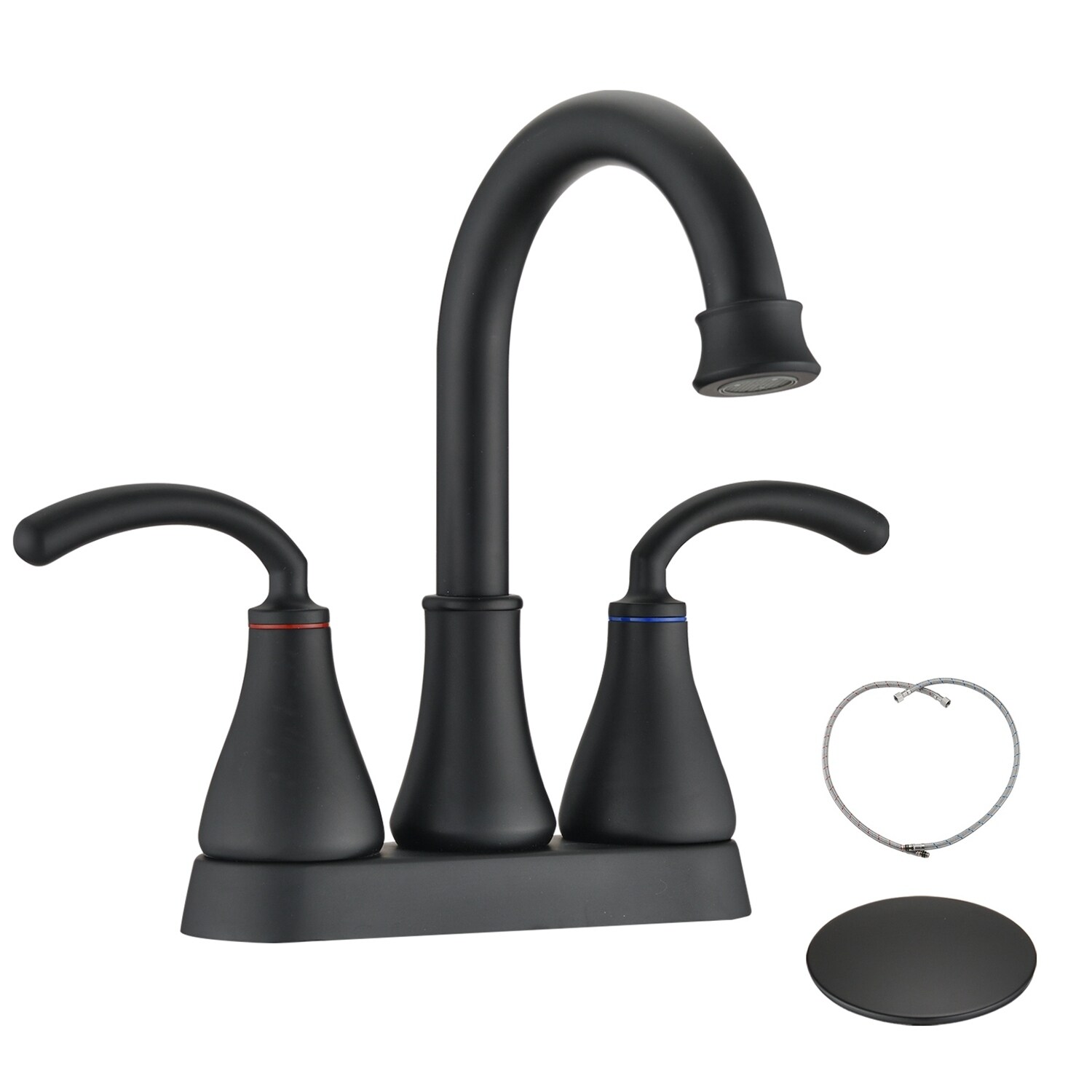4 Inch Centerset Bathroom Sink Faucet With Drain Assembly Two Handle Bathroom Faucets 2 Hole High Arc Lavatory Basin Vanity Tap