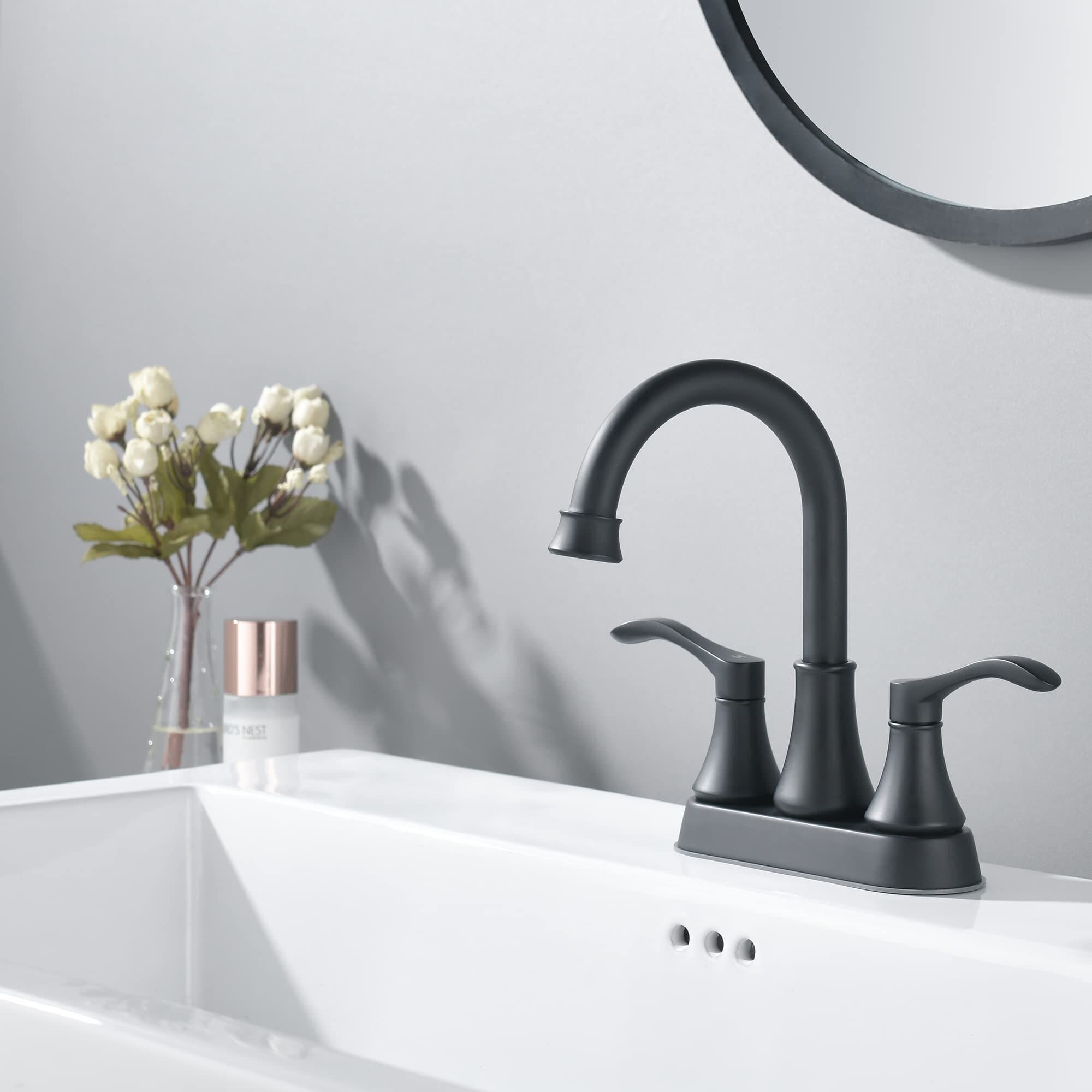 2 Handles 4 Inch Centerset Bathroom Sink Faucet 2 Holes Bathroom Faucet with CUPC Supply Hoses Vanity Tap with Pop Up Drain