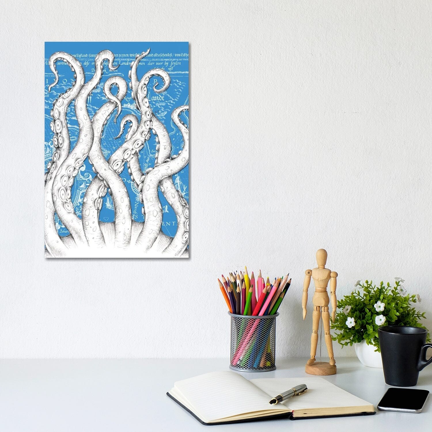 iCanvas "White Tentacles Octopus Blue Vintage Map" by Seven Sirens Studios Canvas Print