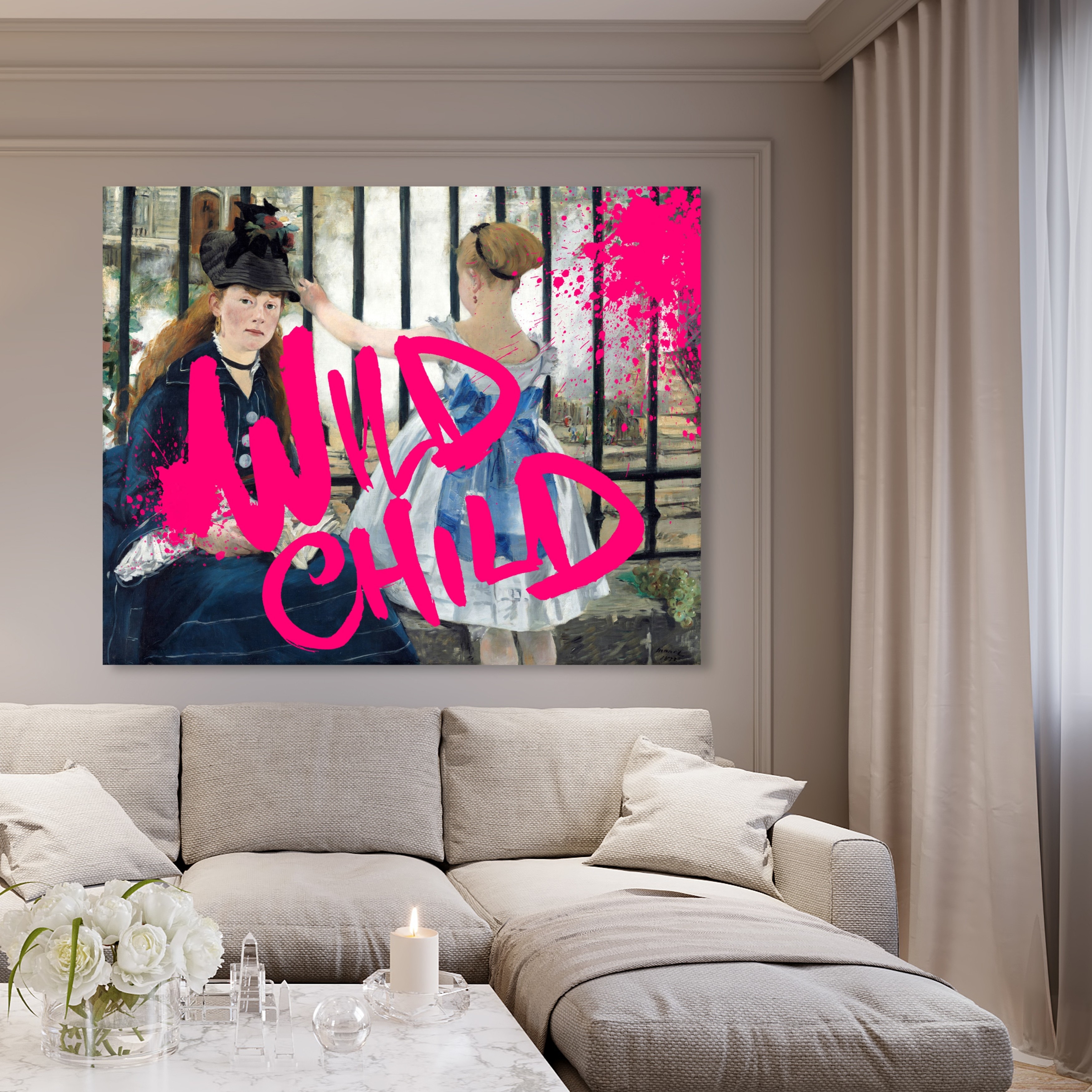 Oliver Gal 'Manet's Wild Child' Classic and Figurative Wall Art Canvas Print - Pink, Blue