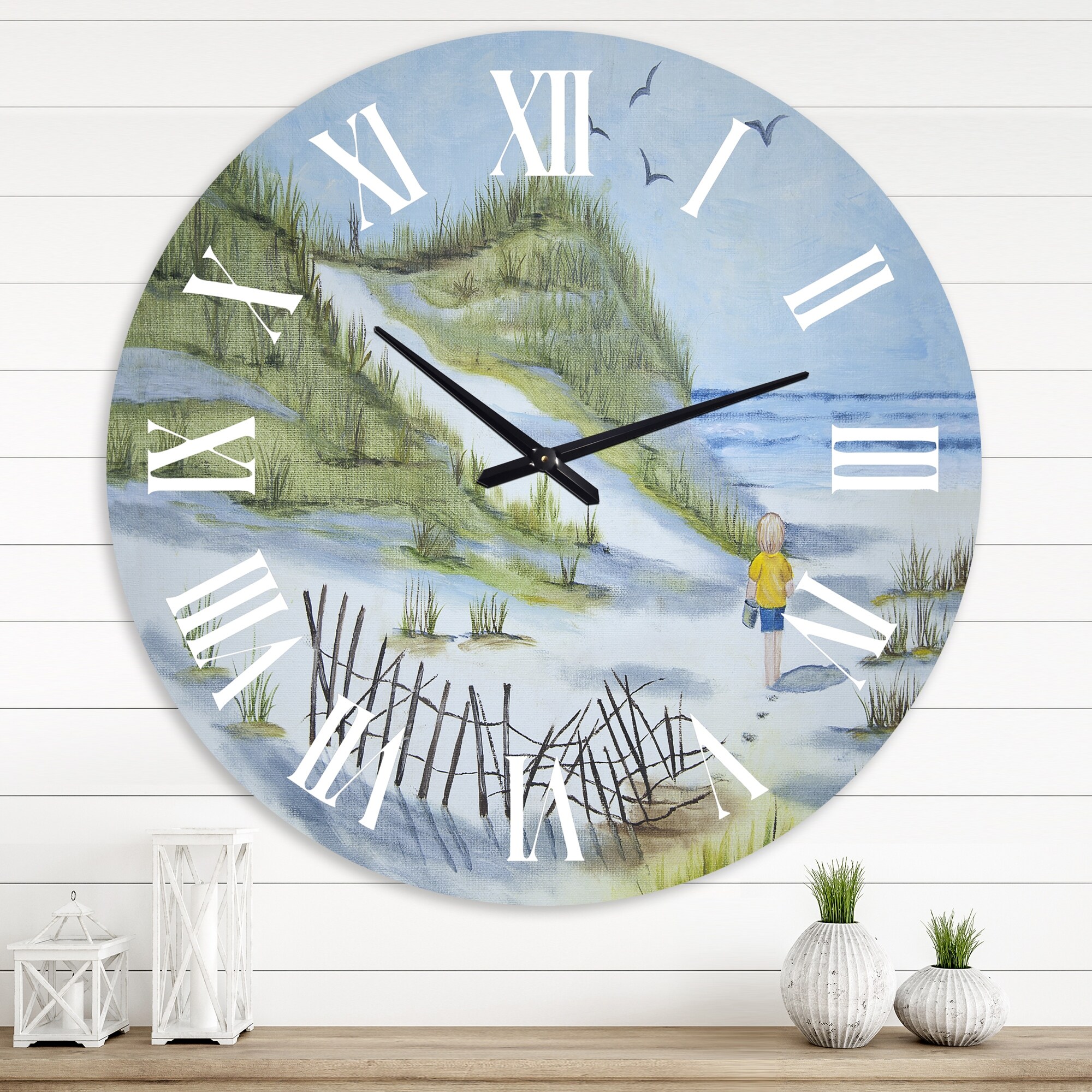 Designart 'Child Walking the Beach' Nautical & Coastal wall clock