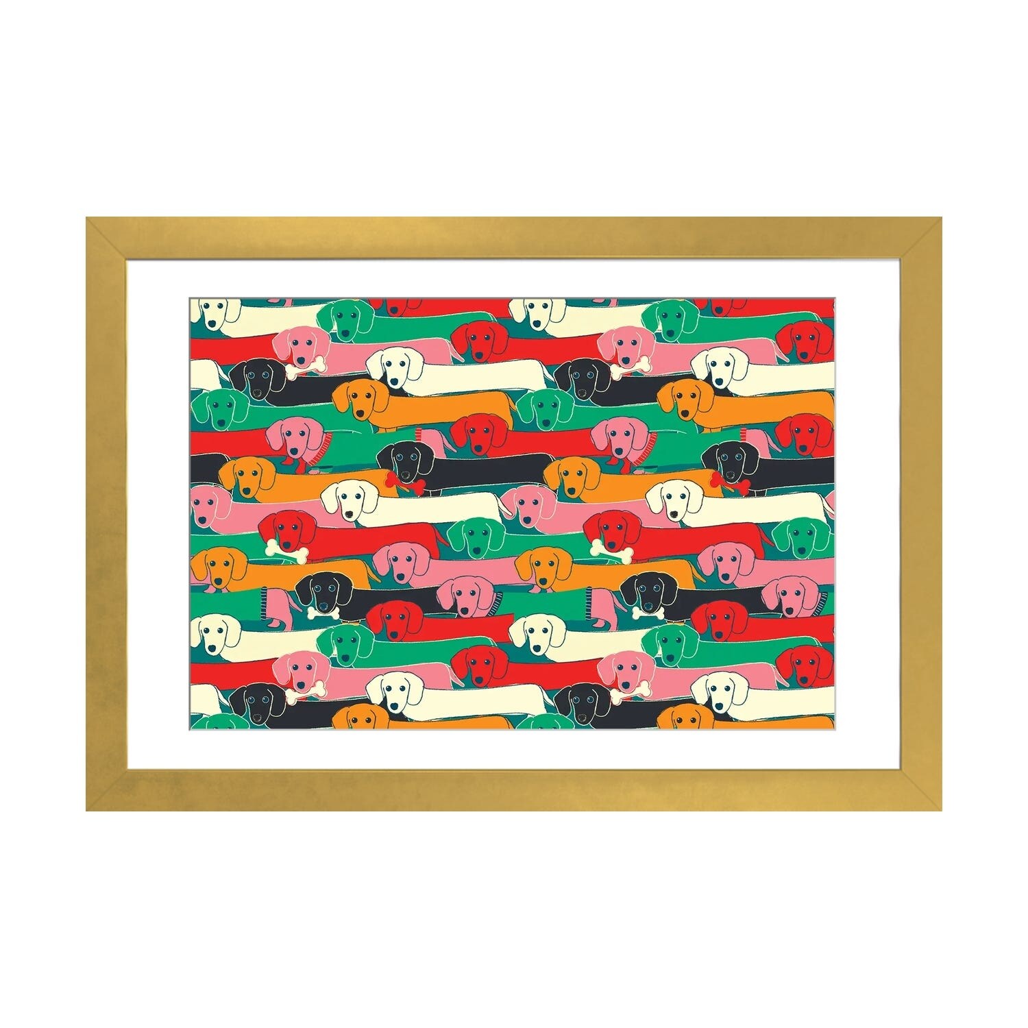 iCanvas "Colored Dogs Pattern II" by Show Me Mars Framed