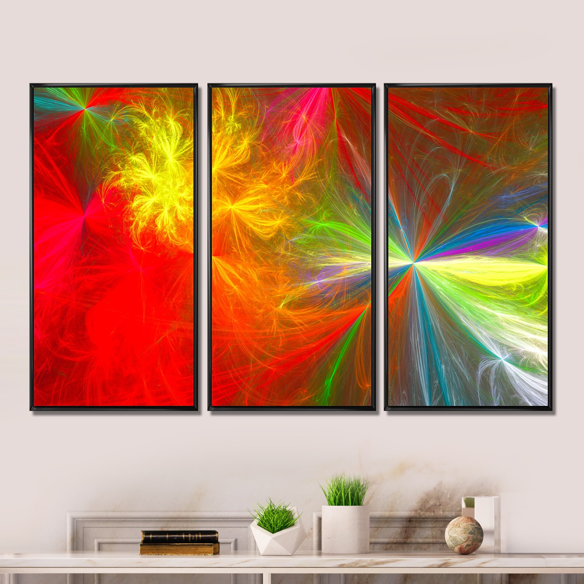 Designart "Colorful Christmas Spectacular Show" Abstract Framed Art Set of 3 - 4 Colors of Frames
