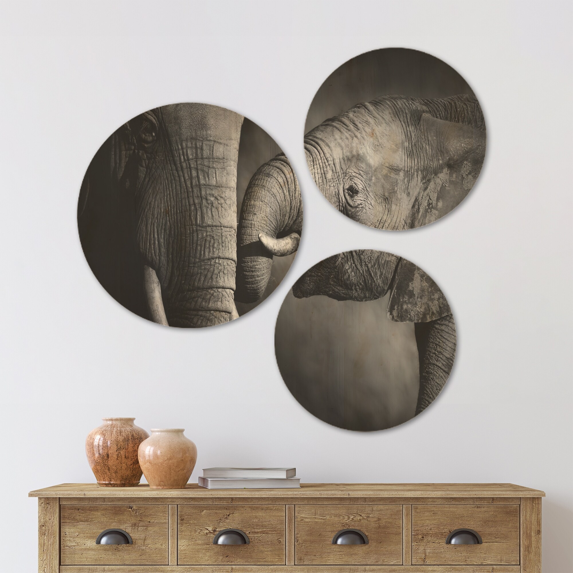 Designart 'Elephants Showing Affection' Abstract Wood Wall Art Set of 3 Circles