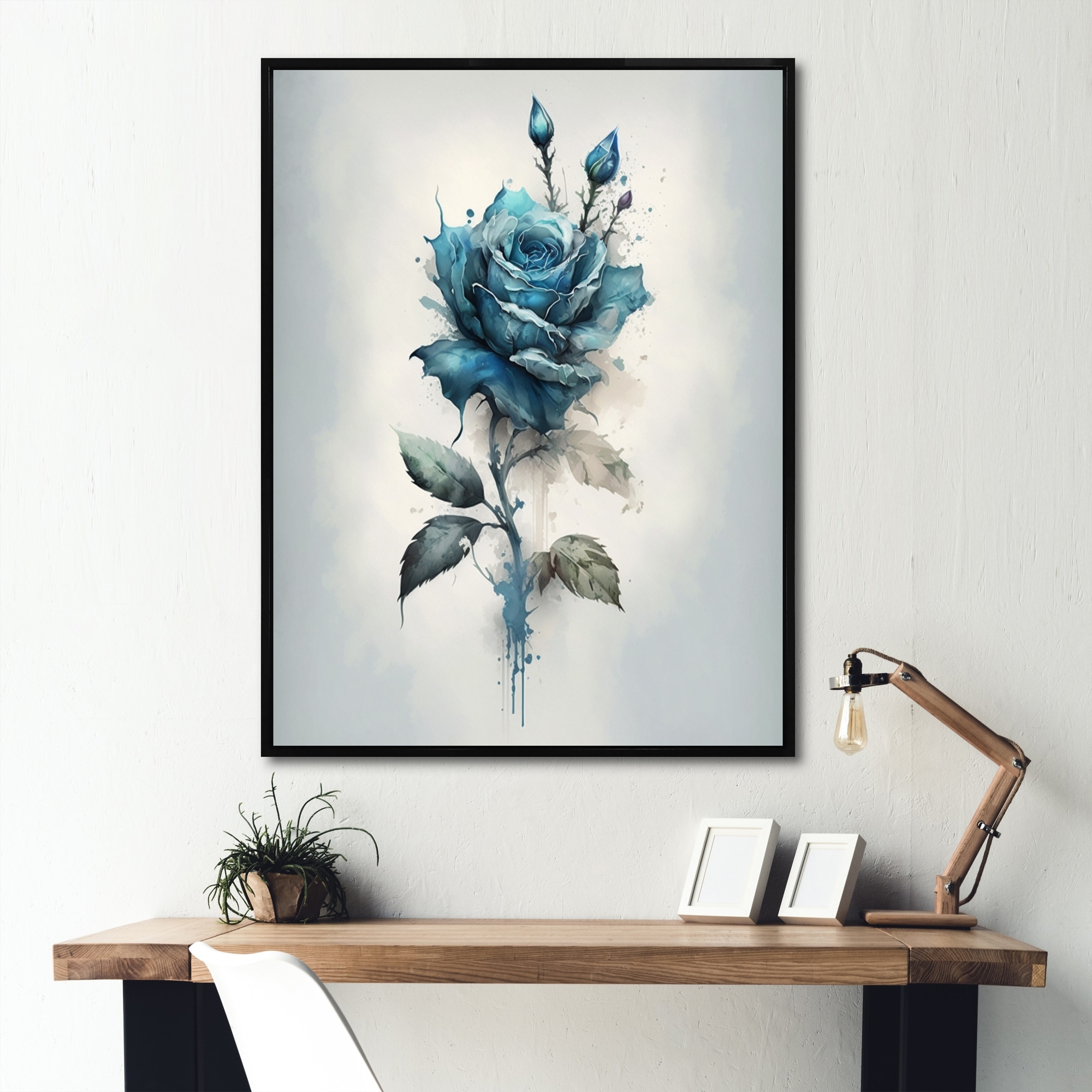 Designart "Blue Rose With Thorns" Floral Rose Framed Canvas Art Print