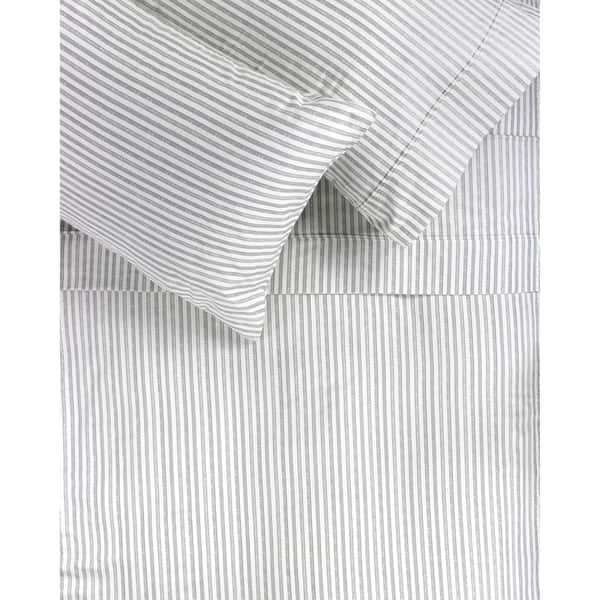 Printed Cotton 400 Thread Count Grey Broken Stripe Bed Sheet Set