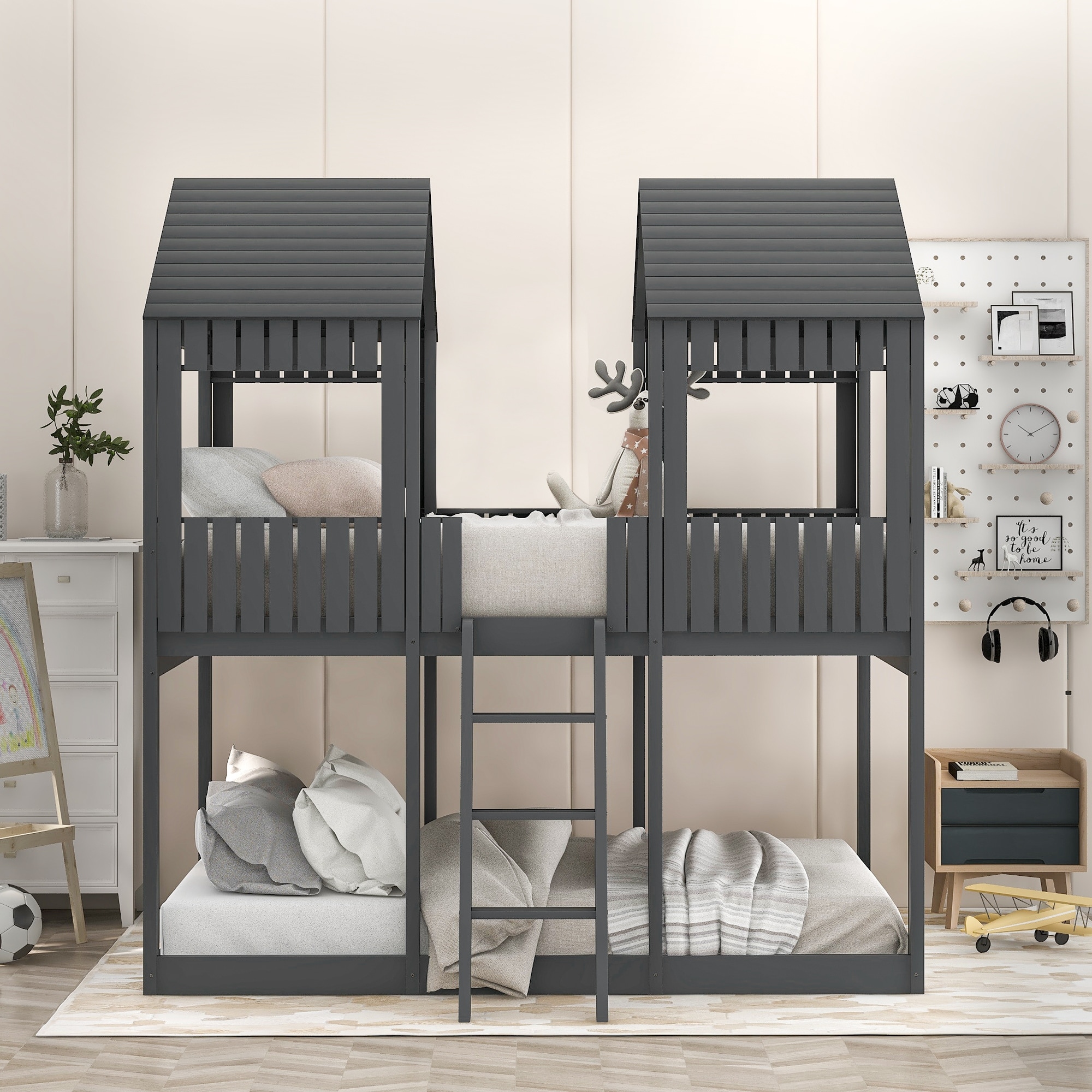 Full Over Full WoodBunk Bed with Roof, Window, Guardrail