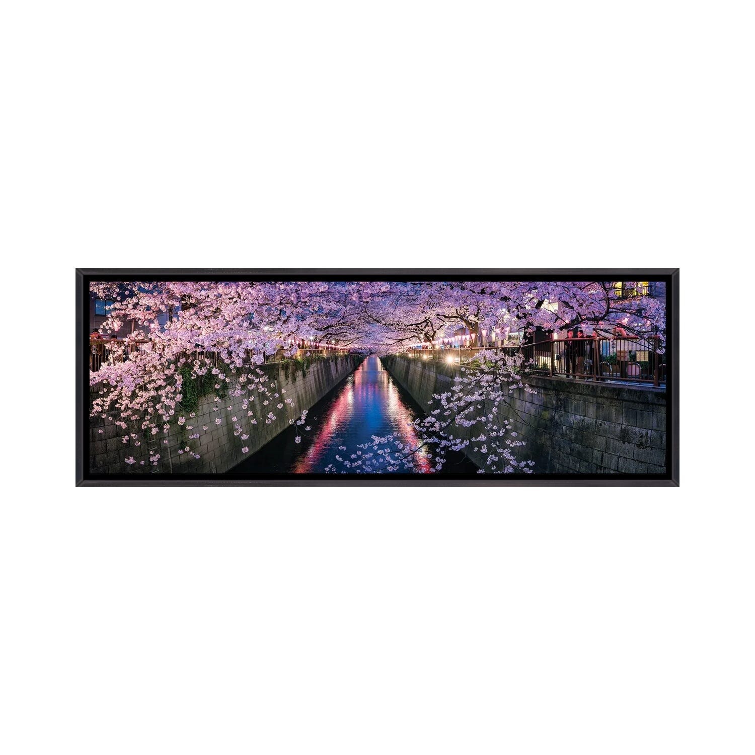 iCanvas "Panoramic View of a Canal At the Nakameguro Cherry Blossom Festival in Tokyo" by Jan Becke Framed