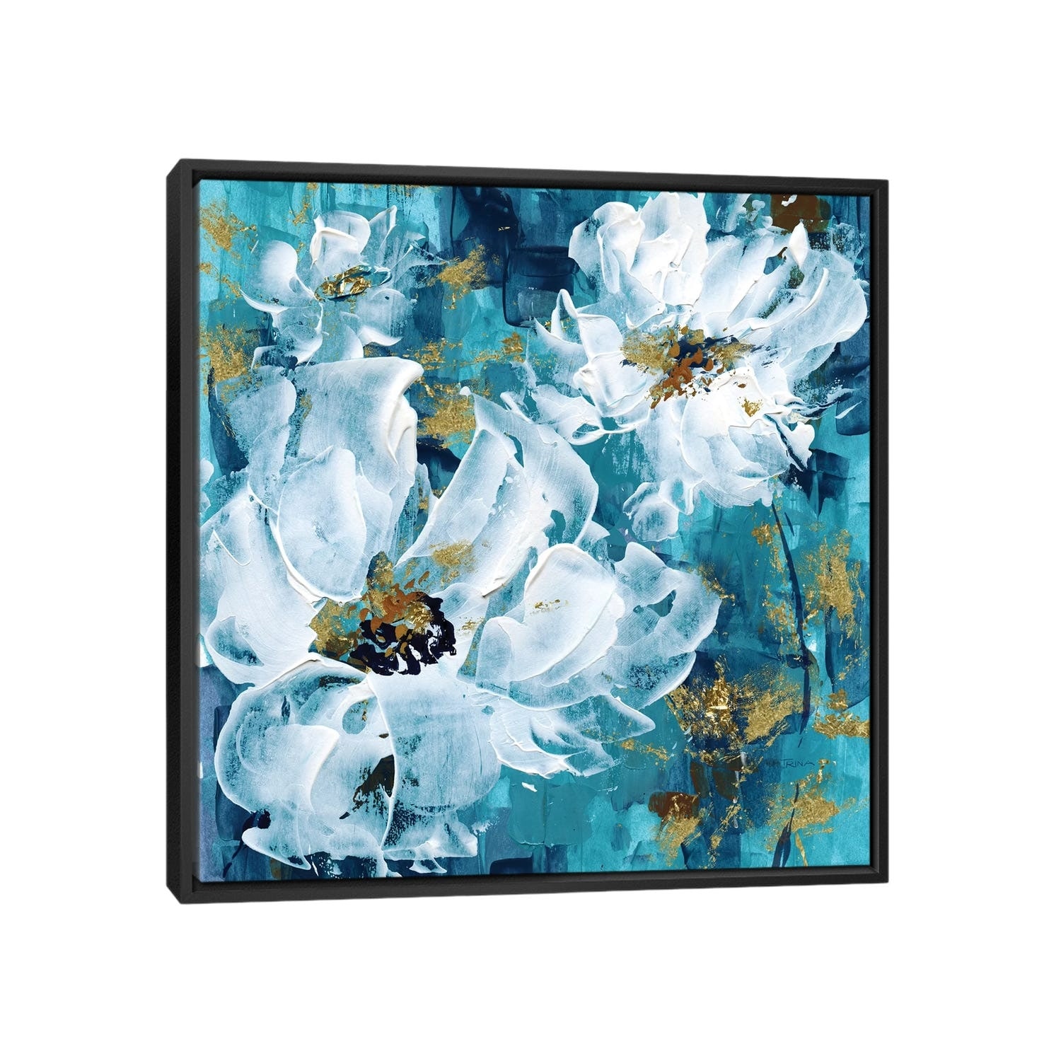 iCanvas "Royal Blue Perfume Bottle Trio With Duo Colored Magnolias" by Pomaikai Barron Framed
