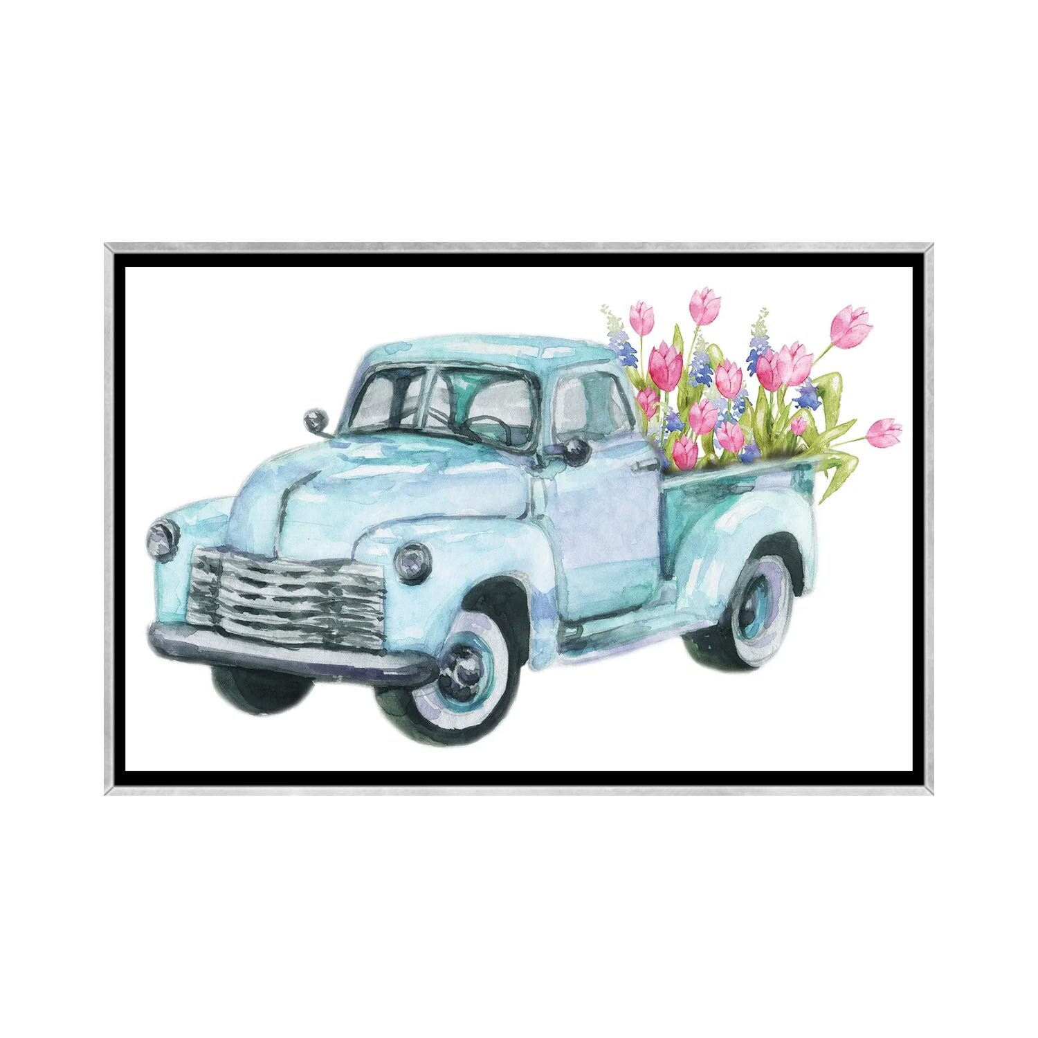 iCanvas "Spring Flower Teal Blue Truck" by Ephrazy Graphics Framed